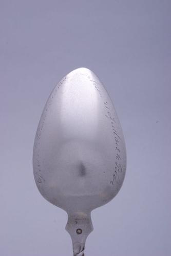 Zilveren geboortelepel met inscriptie door A. Mentz
