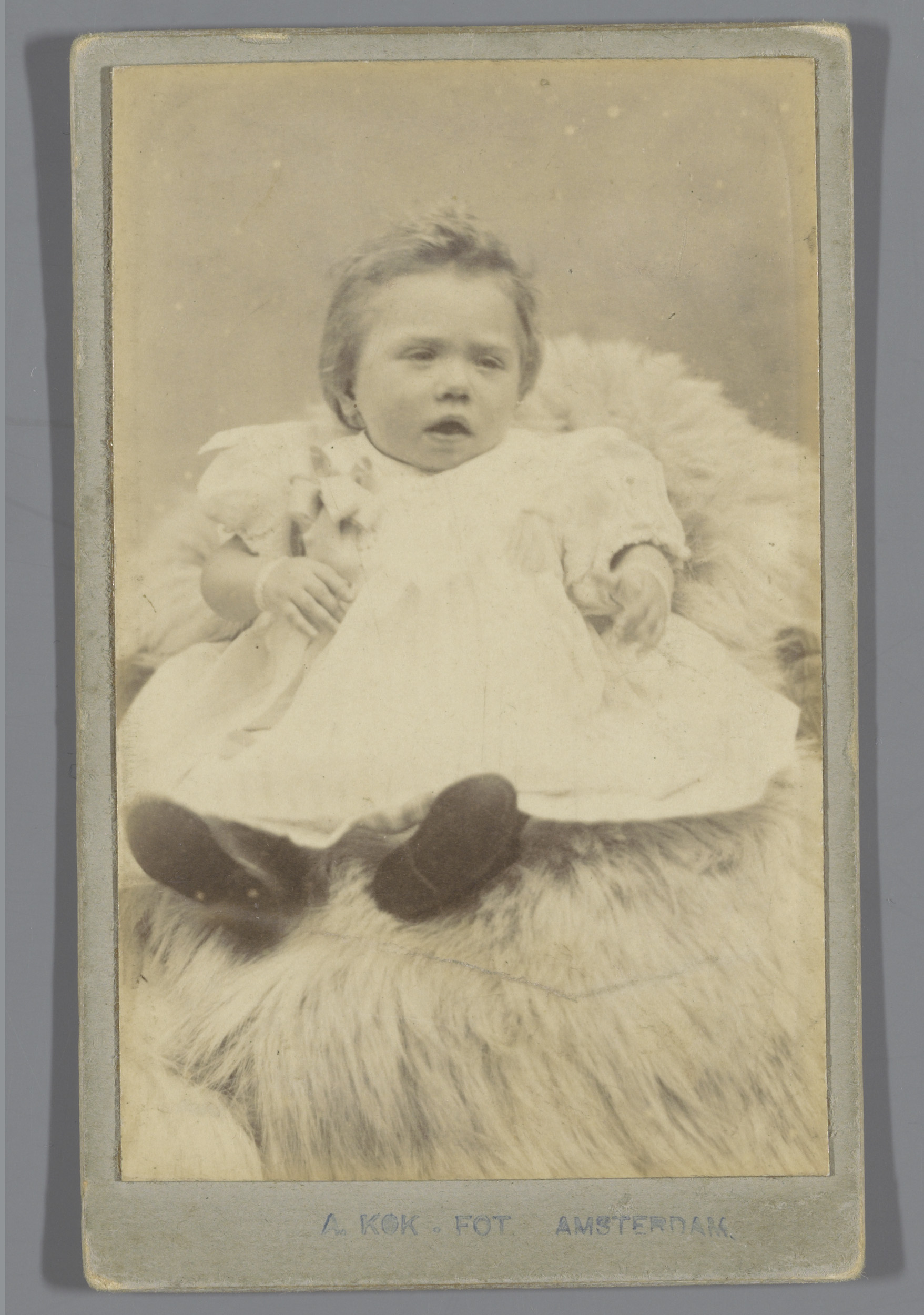 Portret van een onbekende baby op een vacht