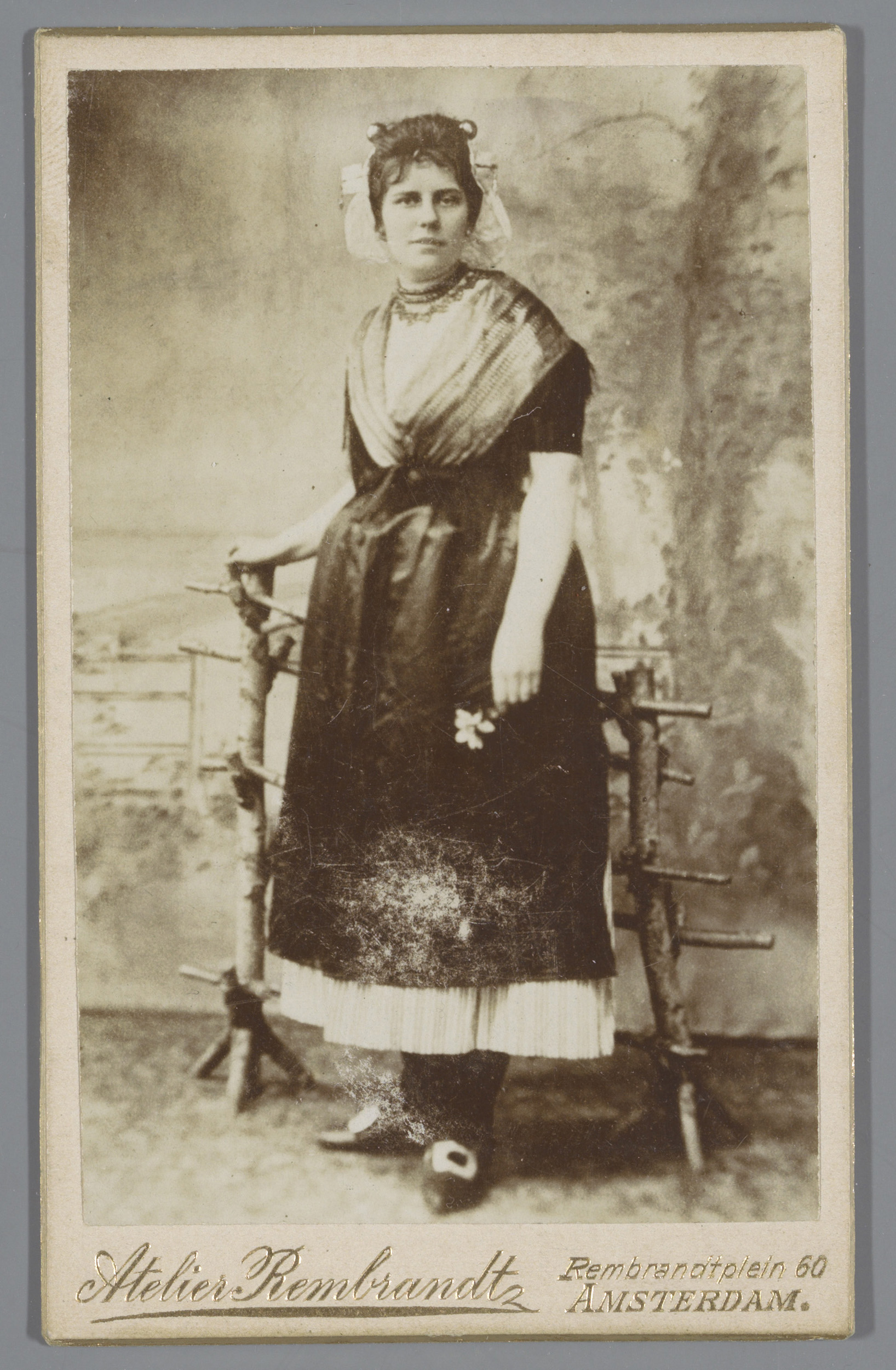 Portret van een onbekende vrouw in Friese klederdracht