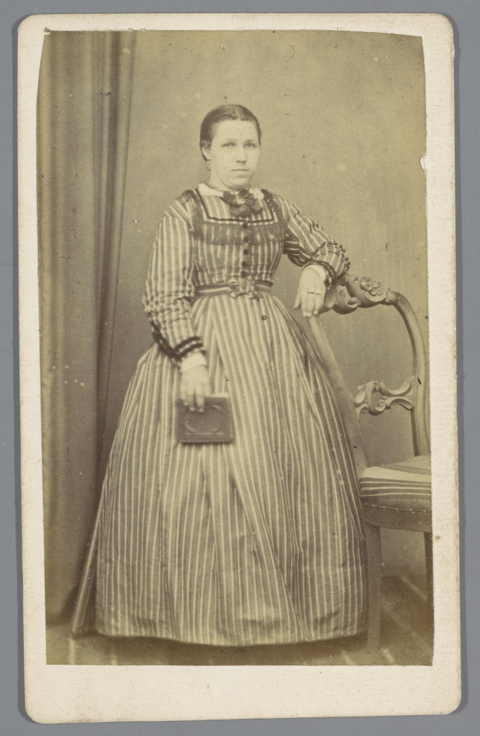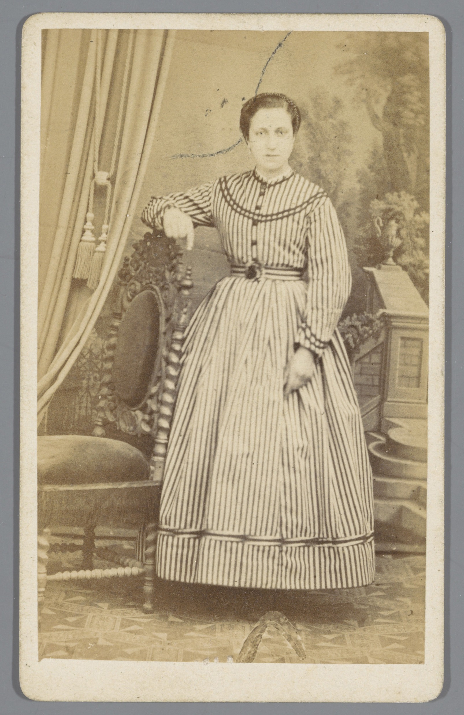 Portret van een onbekende vrouw in gestreepte jurk