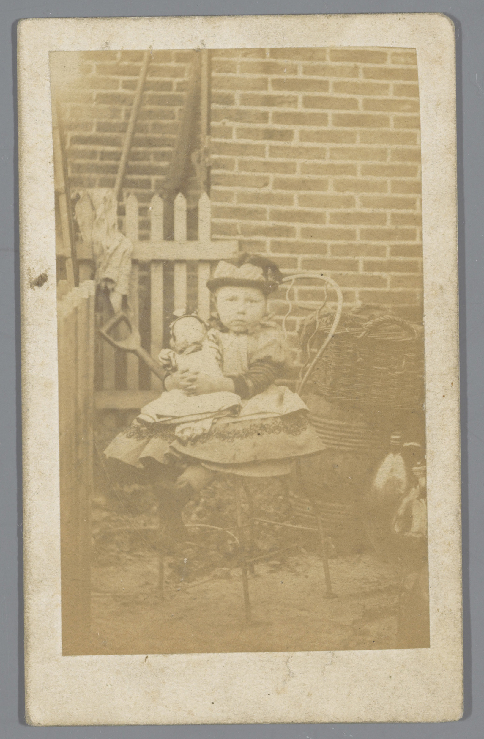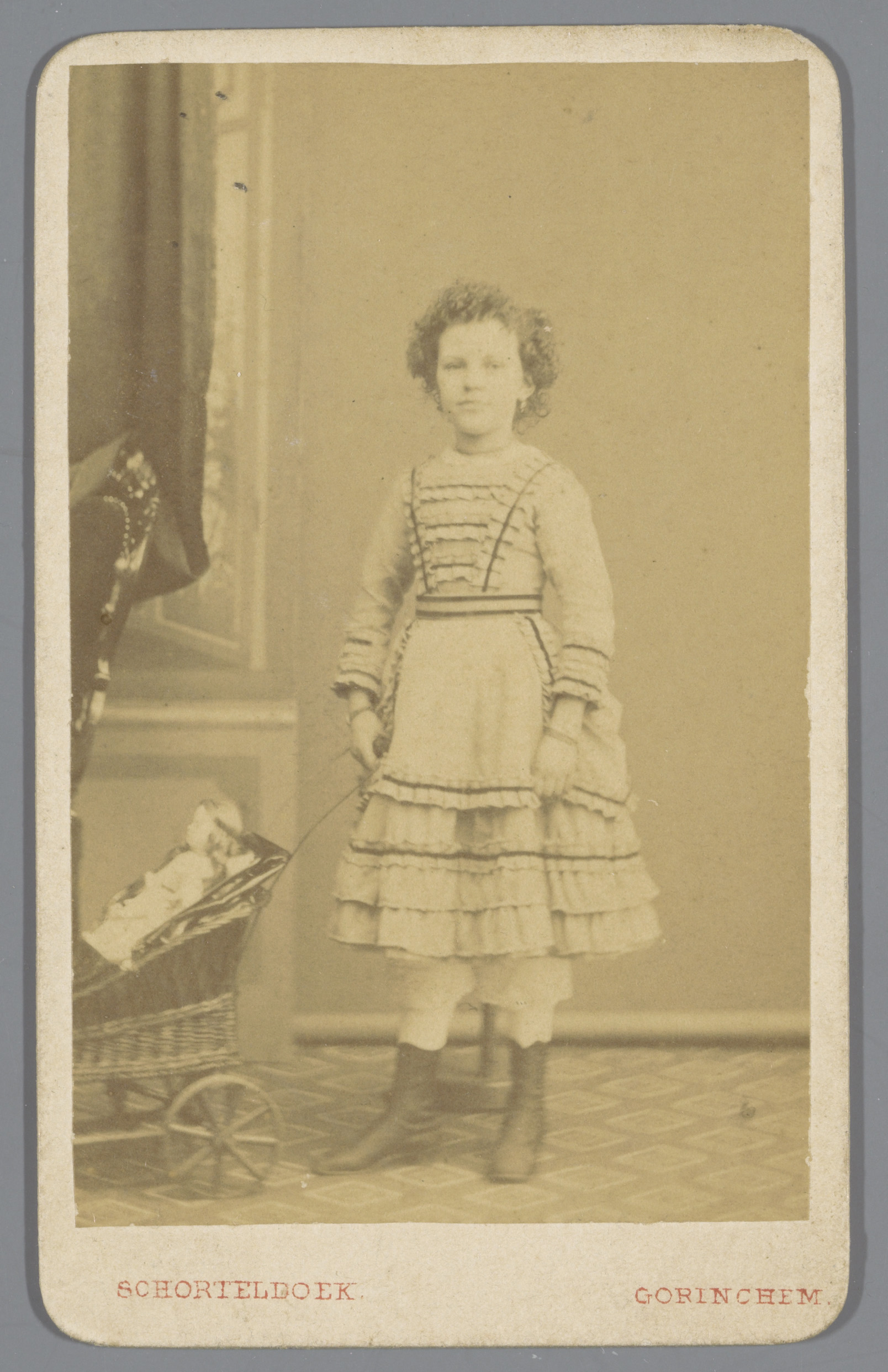 Portret van een onbekend meisje met poppenwagen