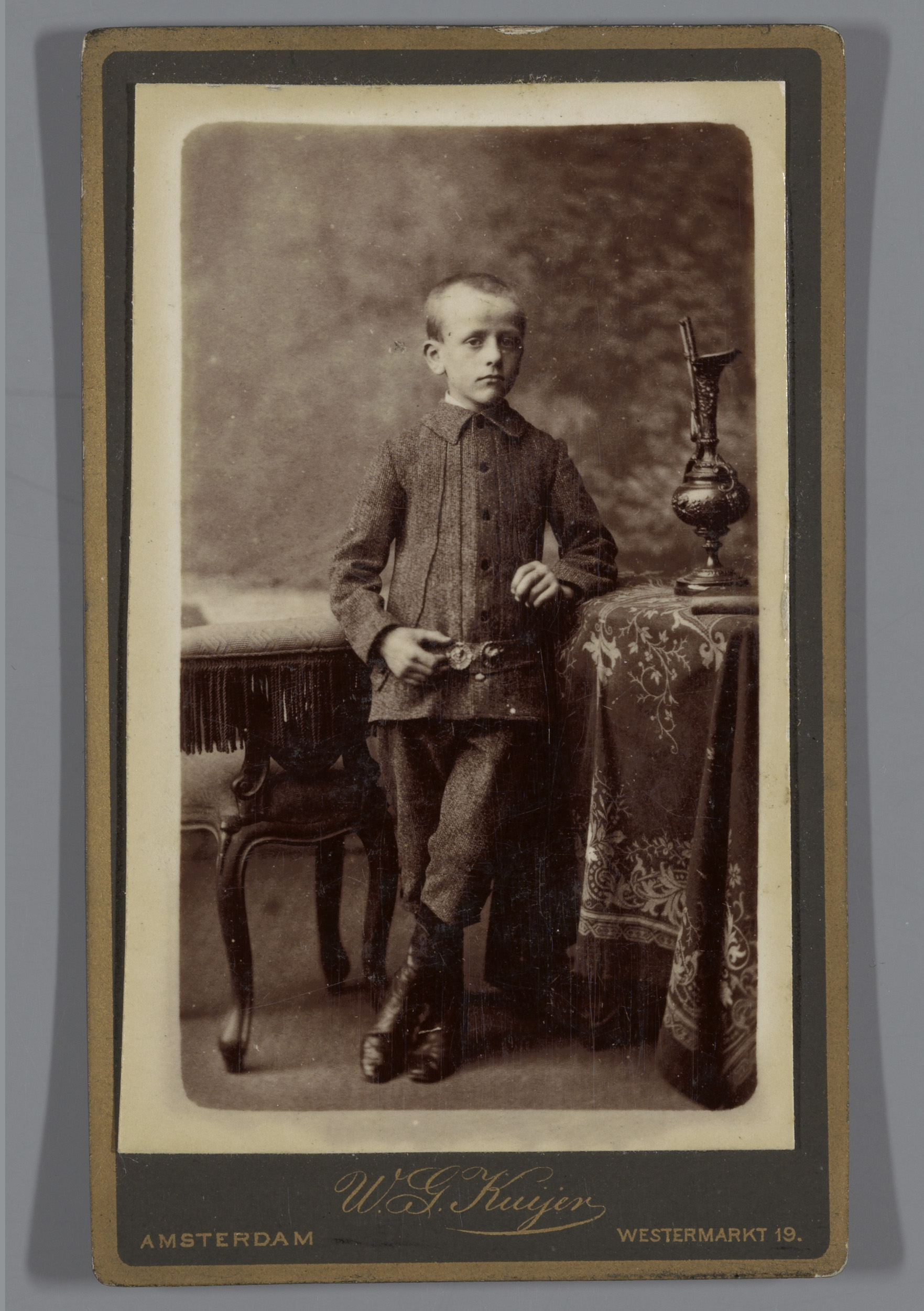 Portret van een onbekende jongen bij meubels