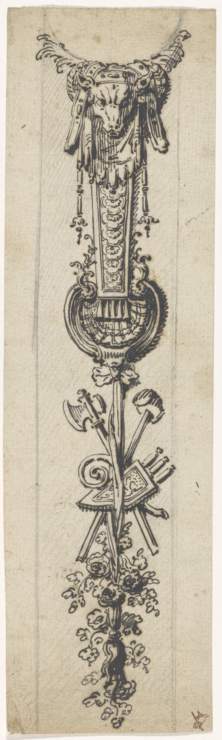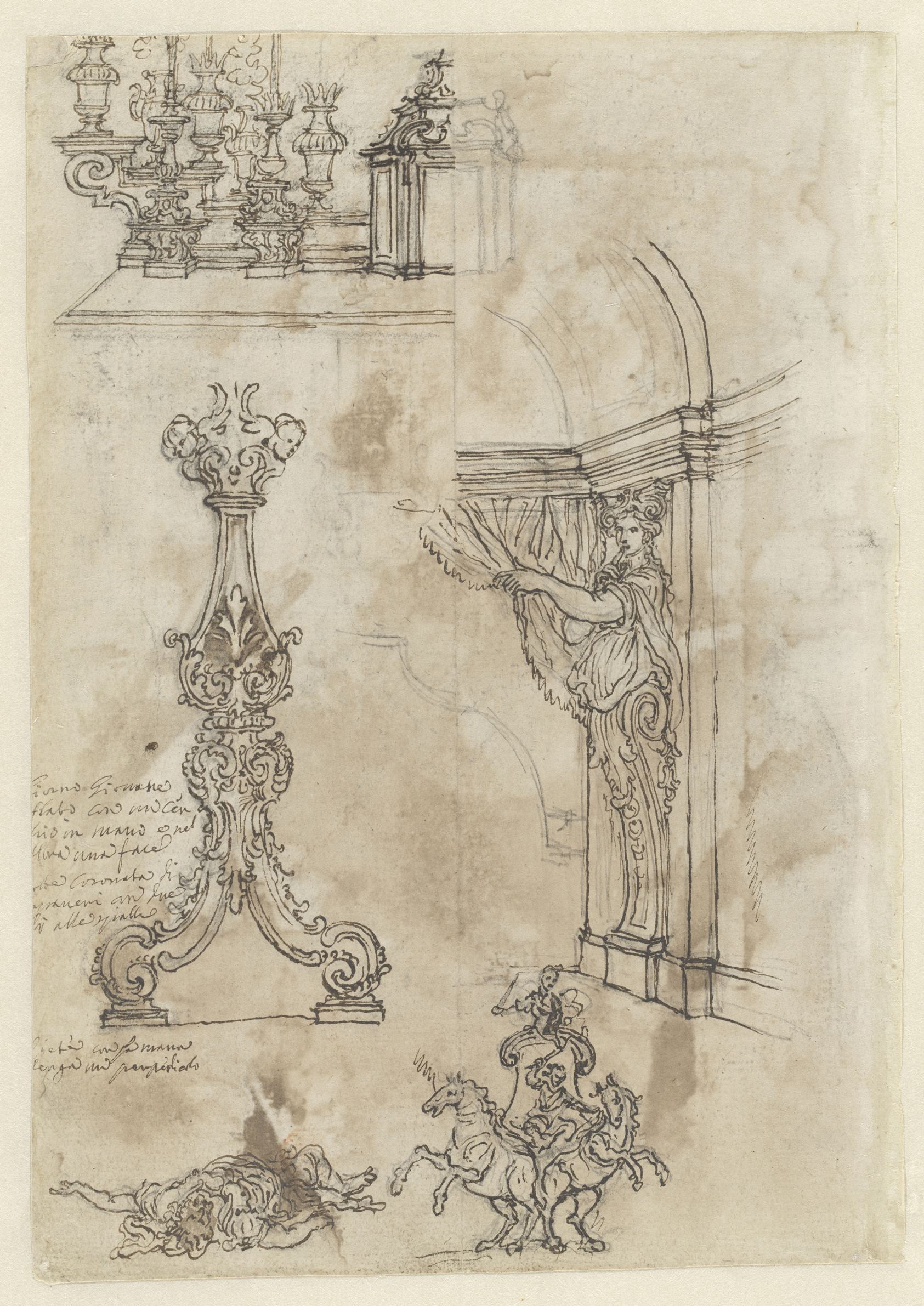 Ontwerp voor een over een vergulde roede gedrapeerd ...