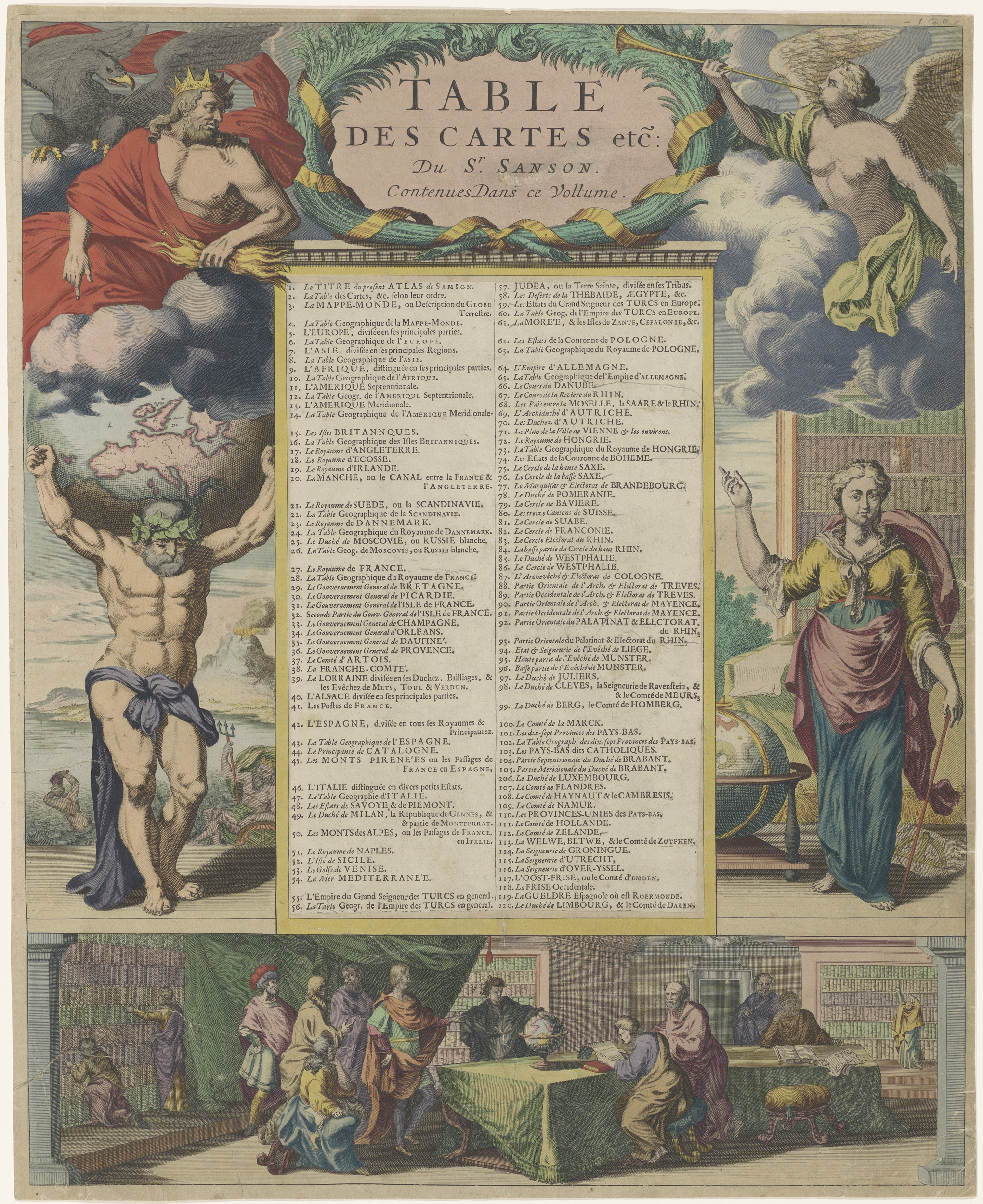 Inhoudsopgave van de Atlas Nouveau door Nicolas Sanson