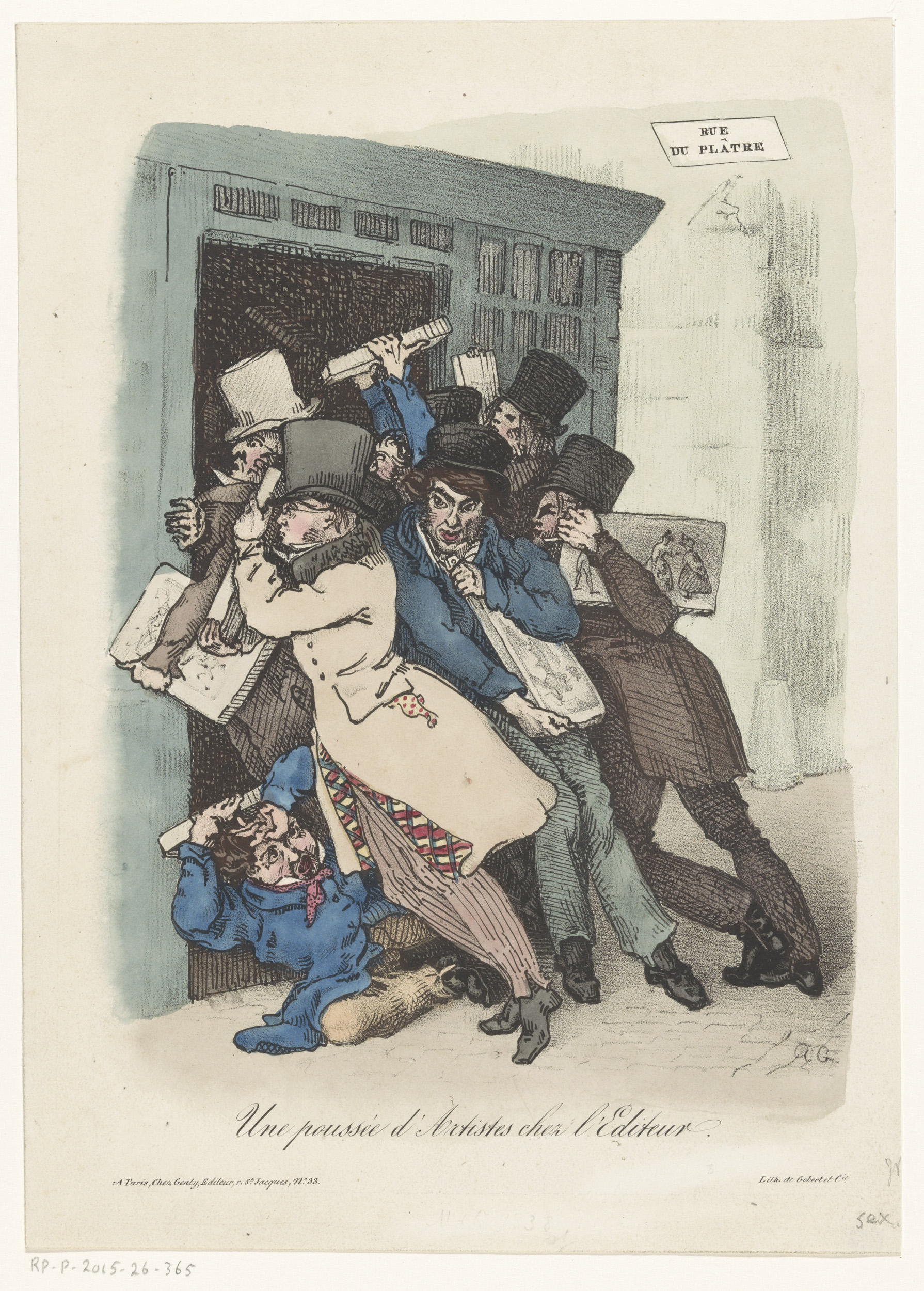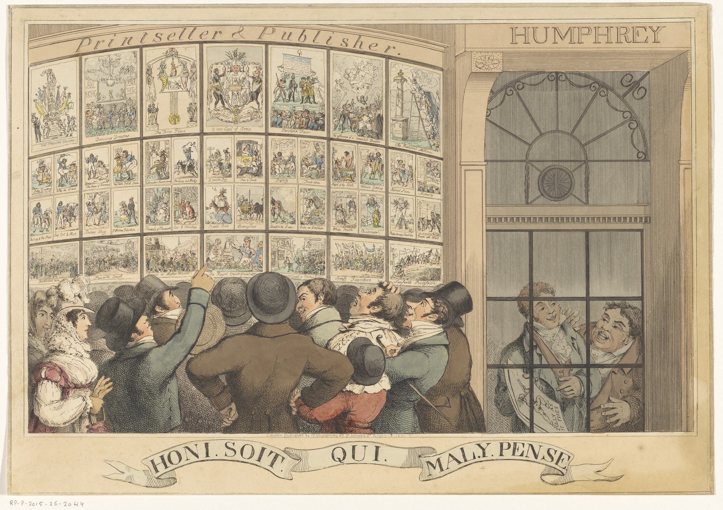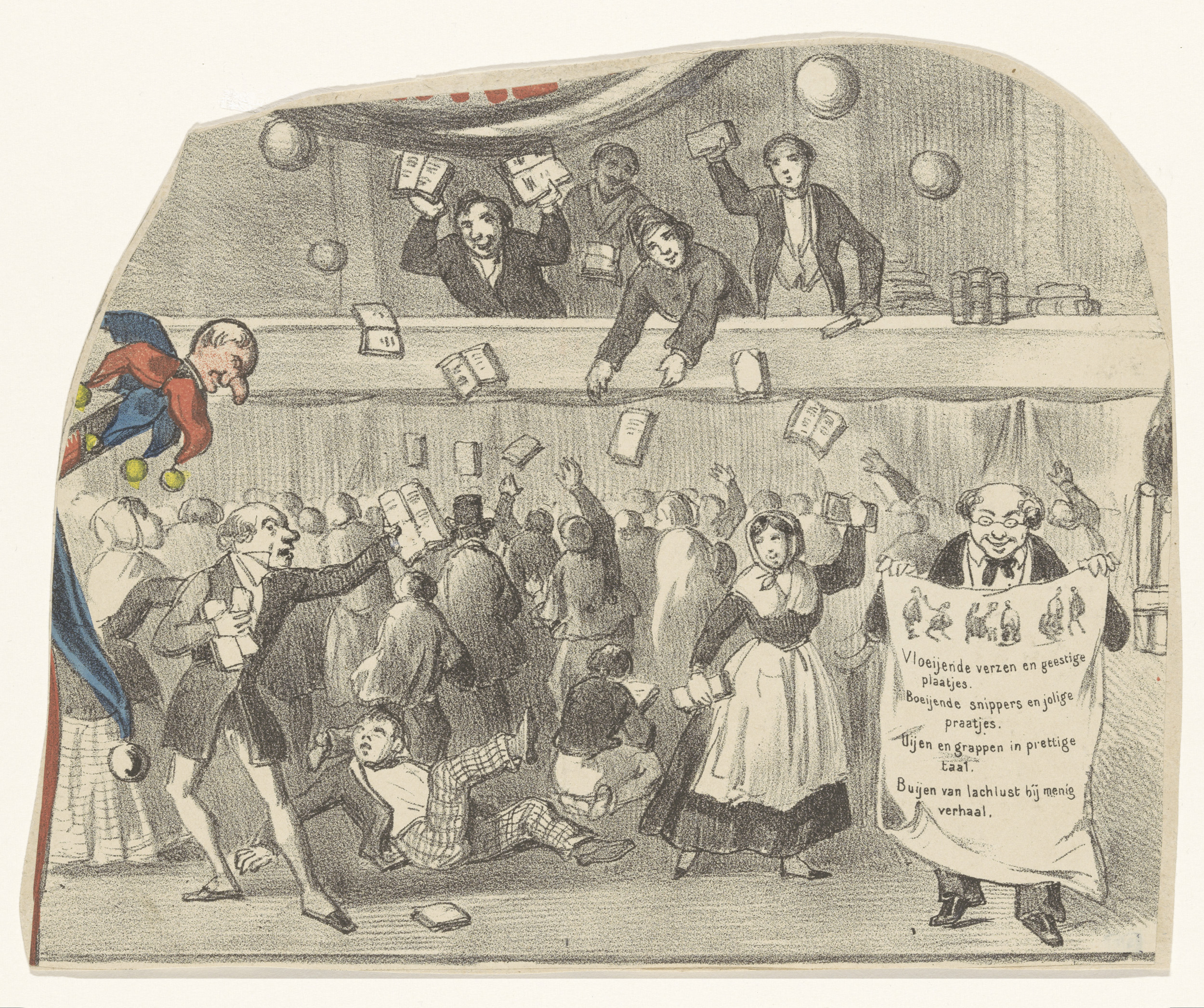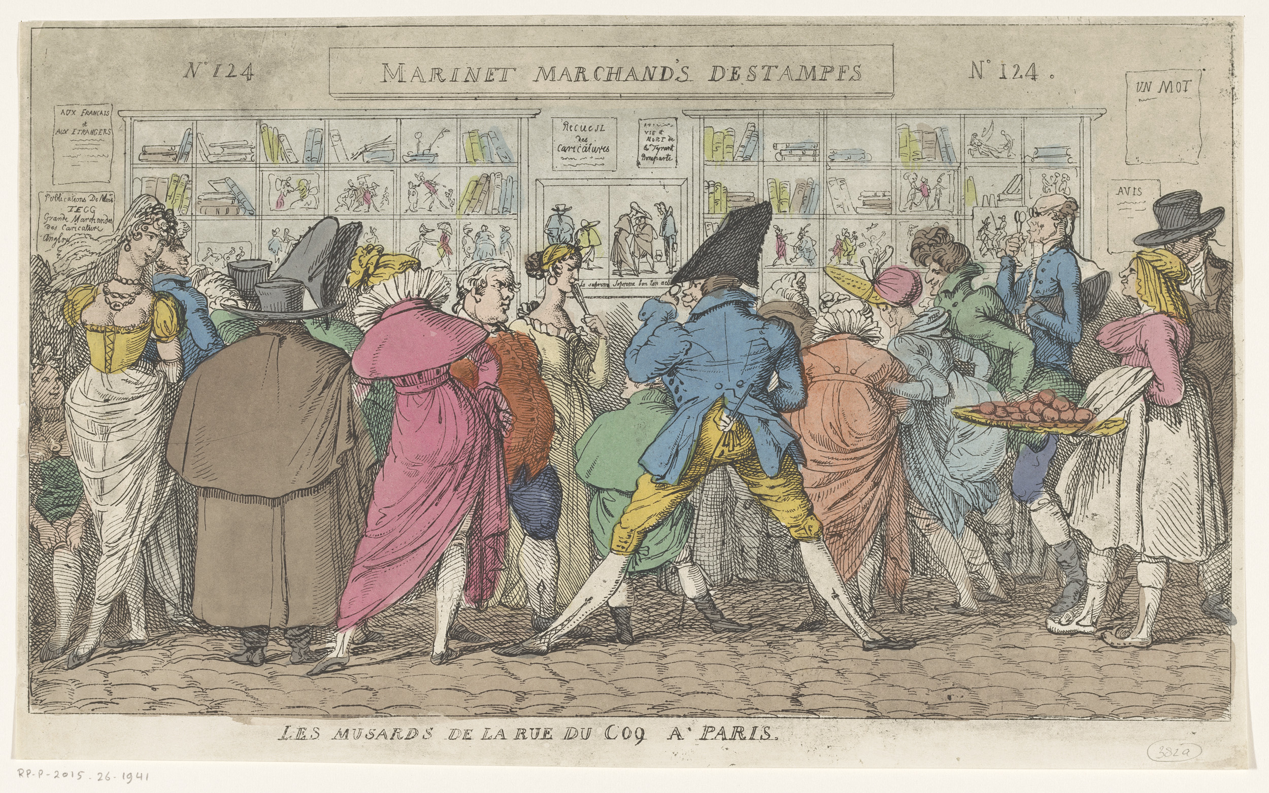 Menigte voor de etalage van uitgever Aaron Martinet ...