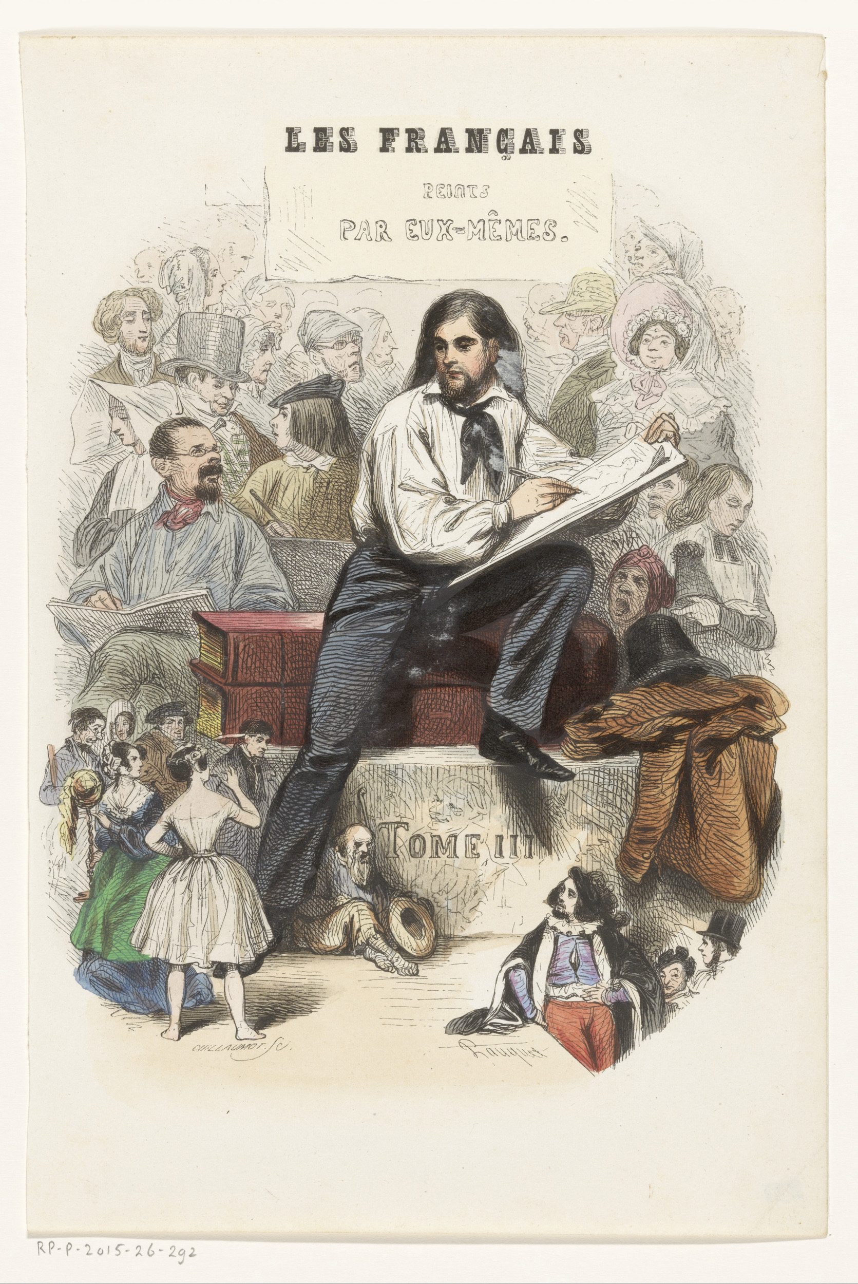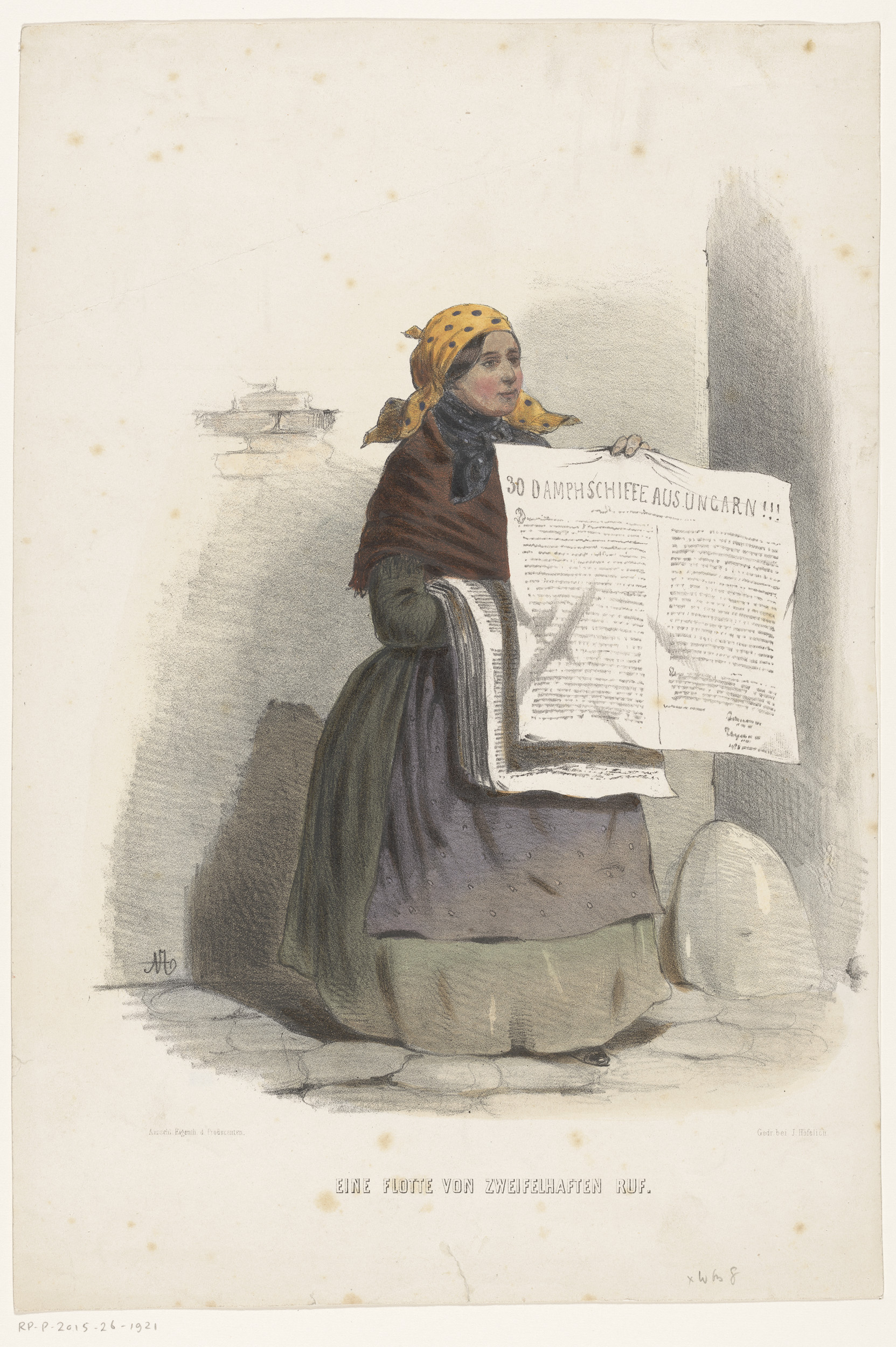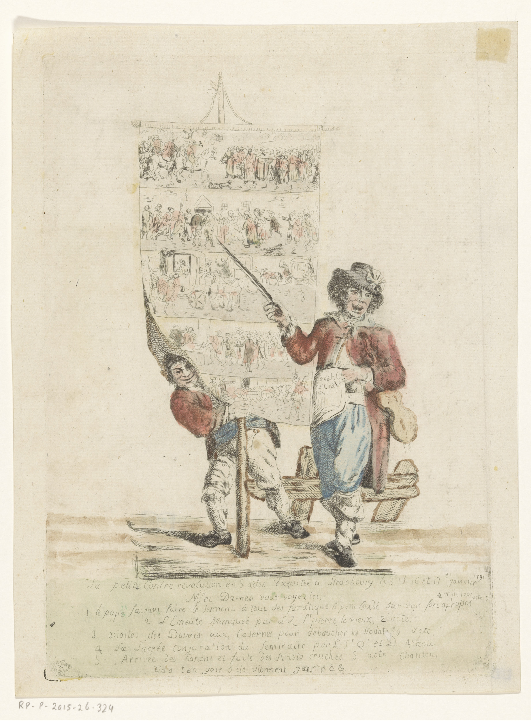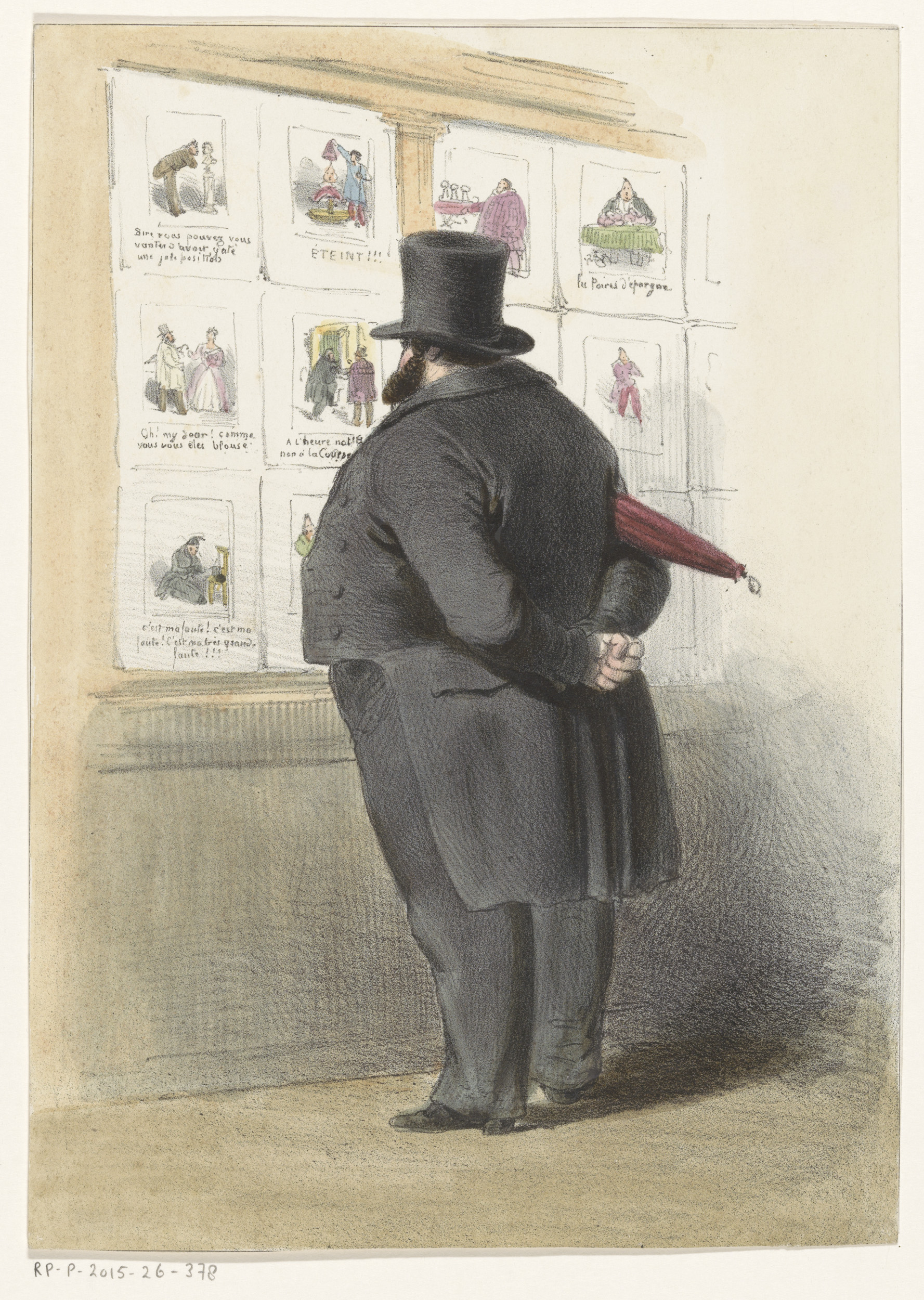 Menigte voor de etalage van uitgever Aaron Martinet ...