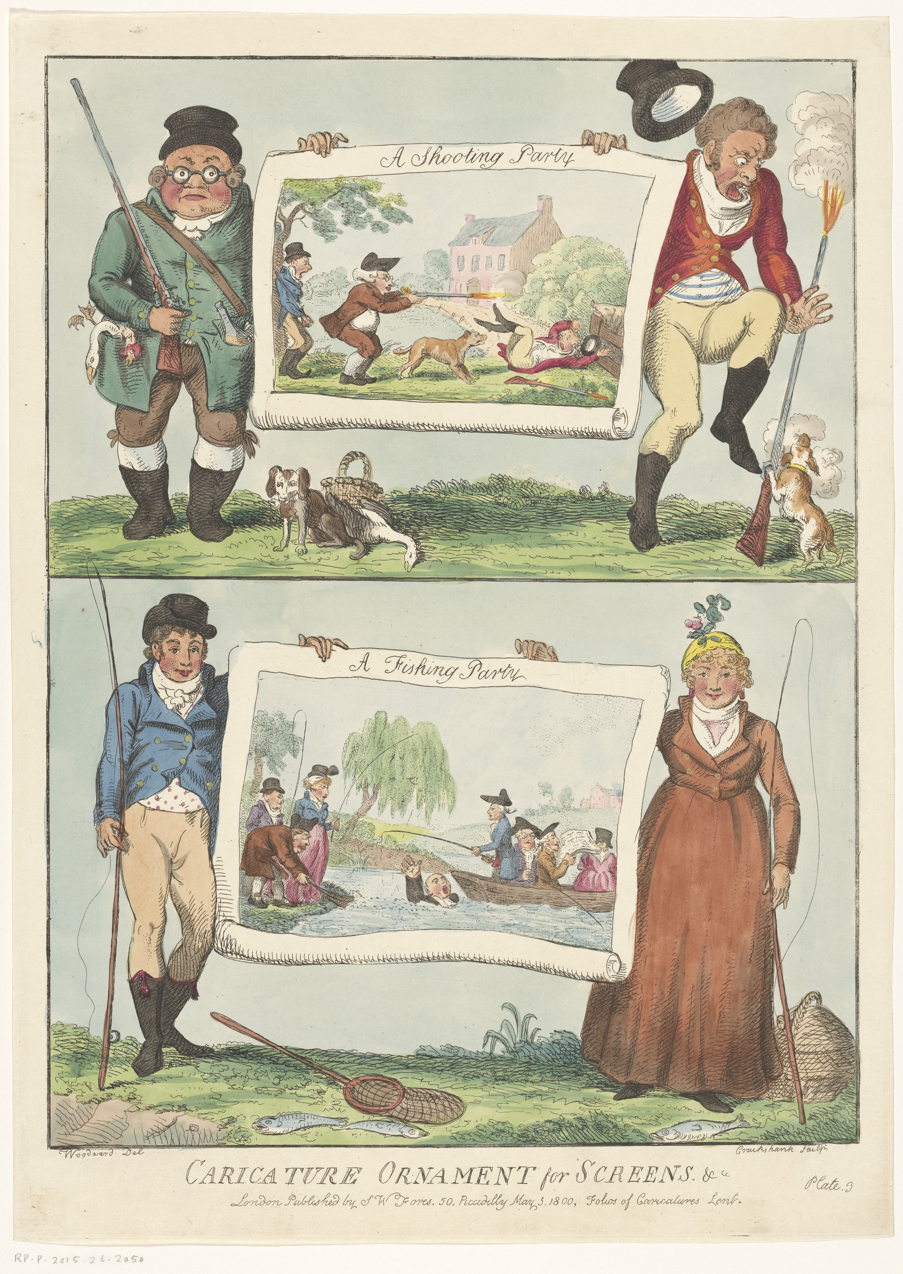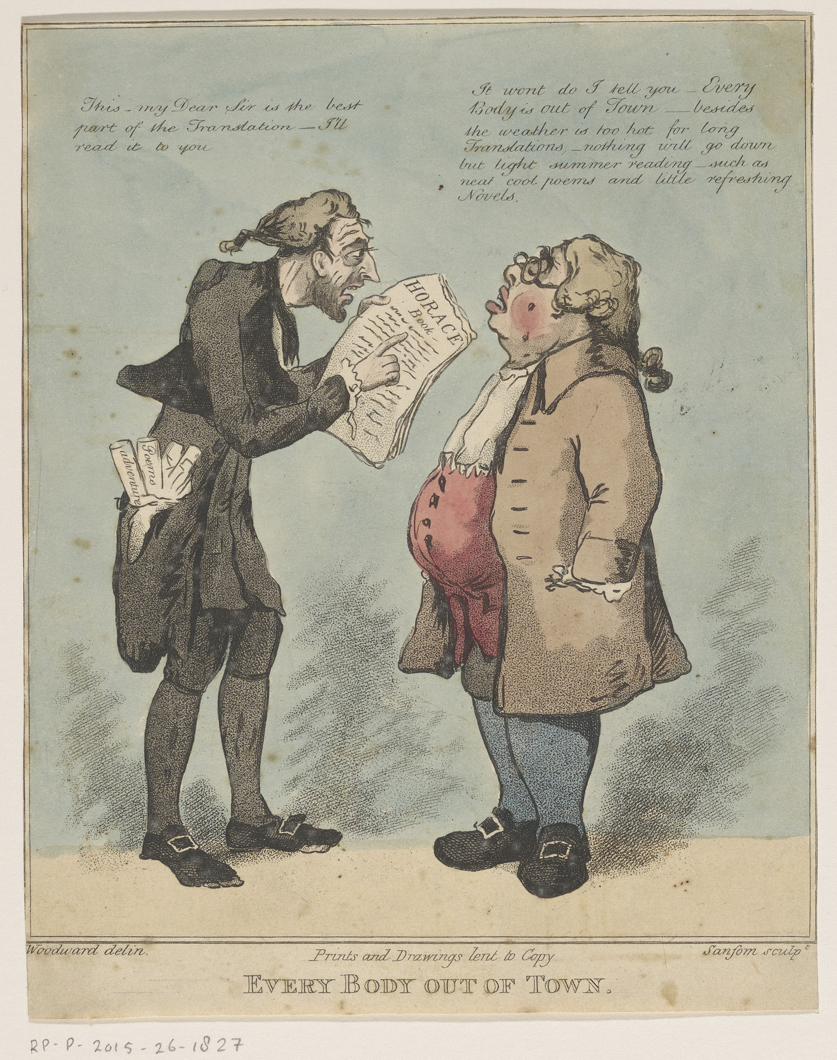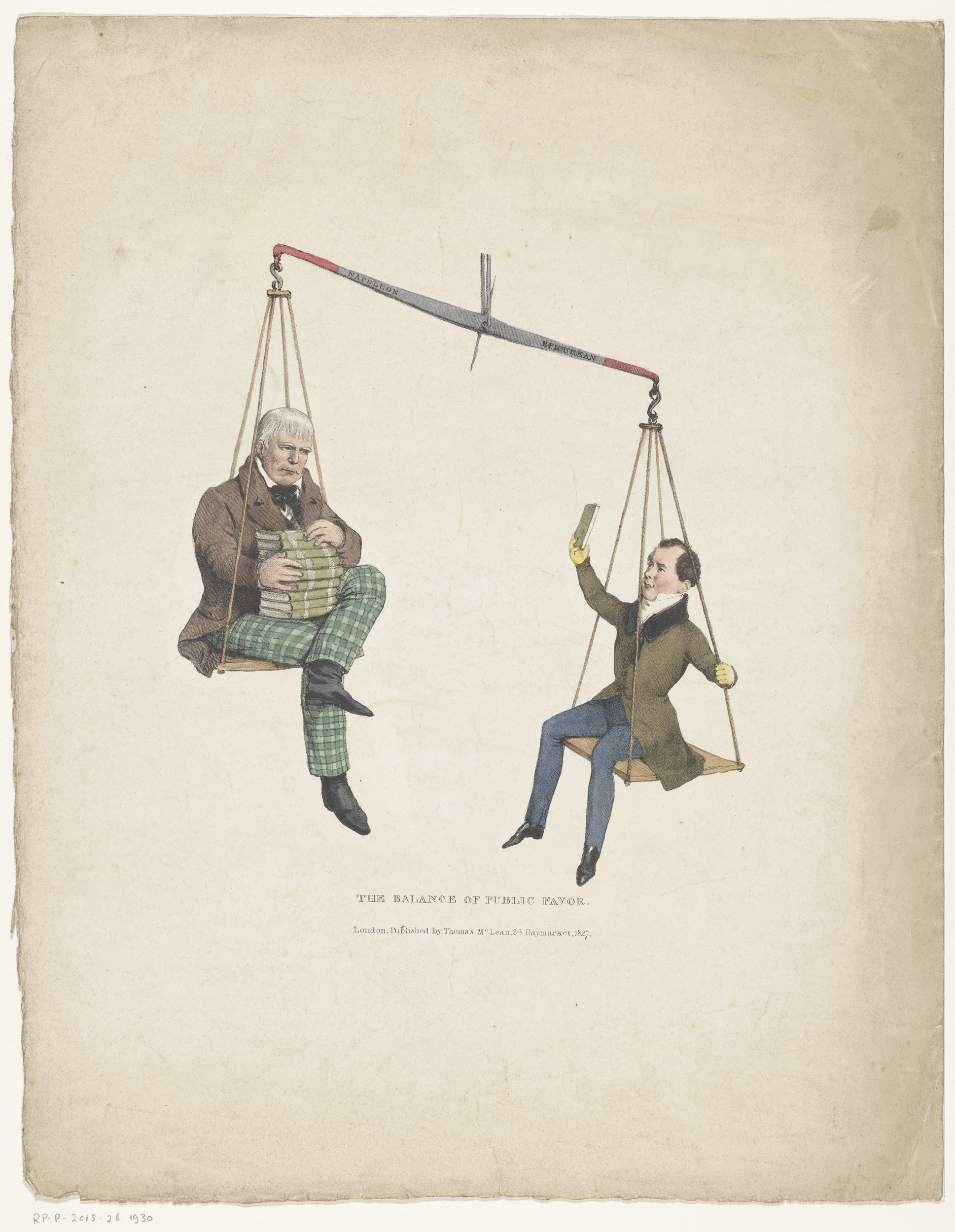 Weegschaal met de schrijvers Walter Scott en Thomas ...
