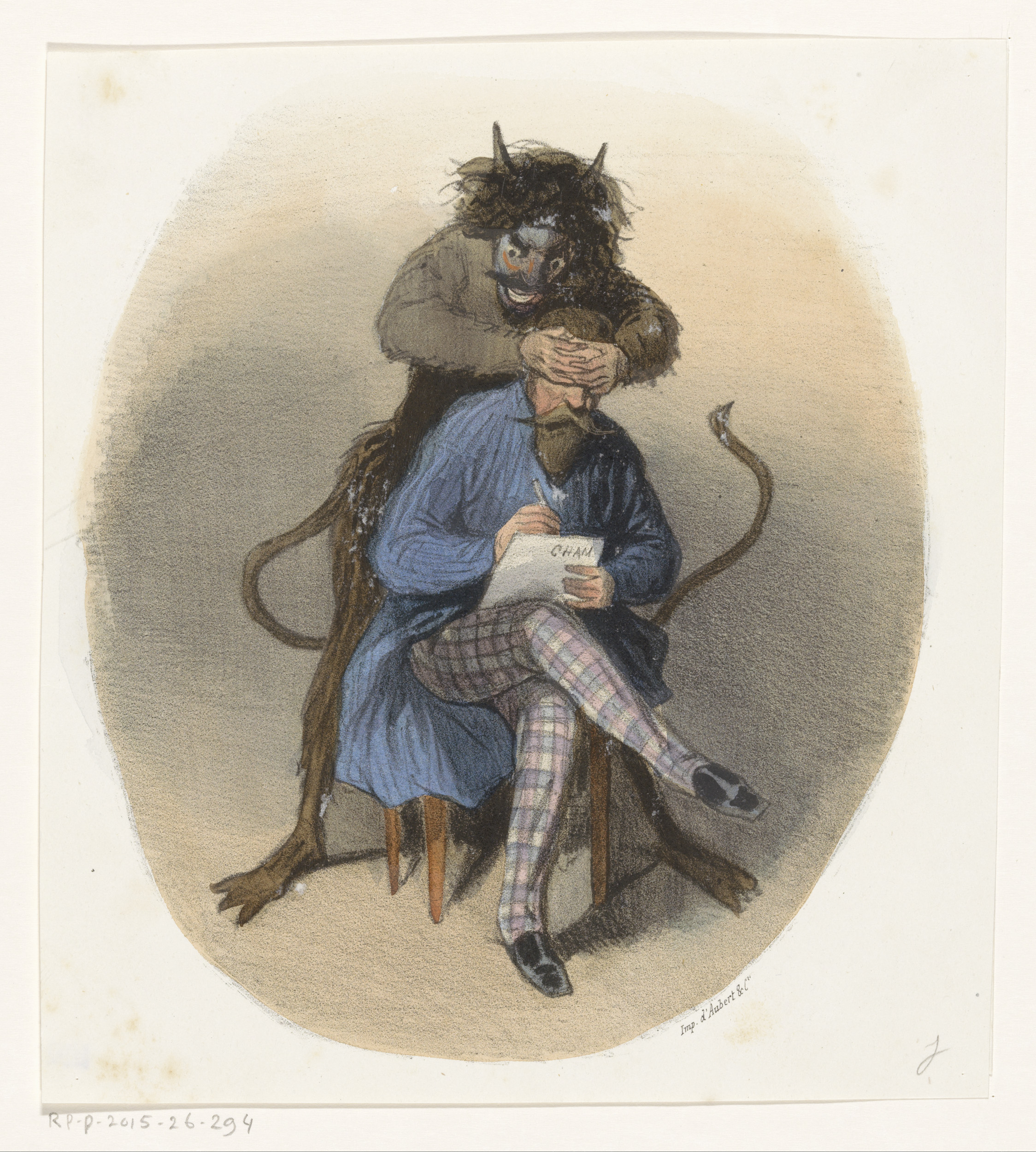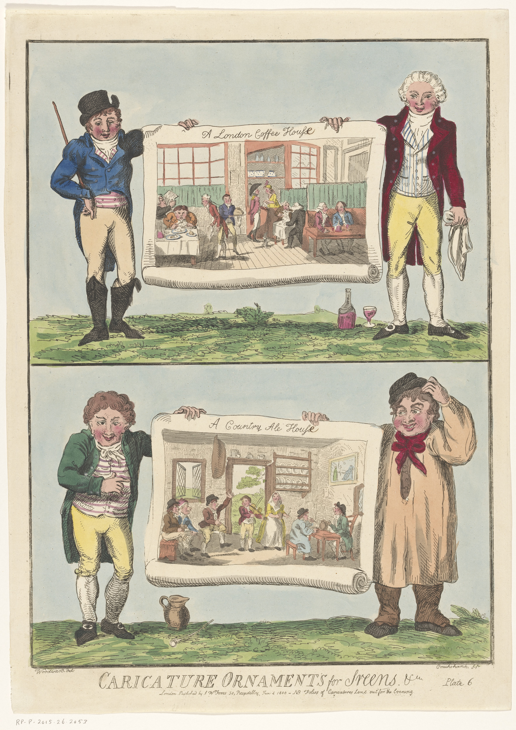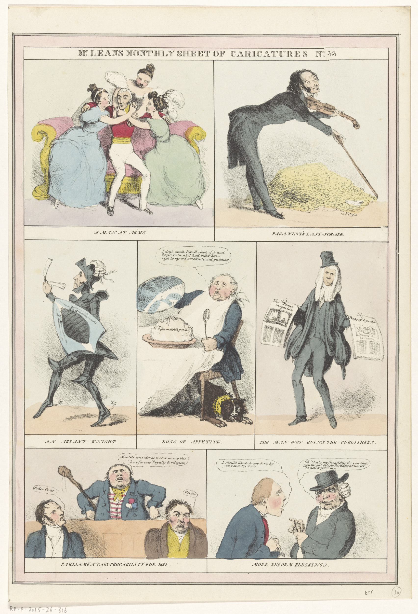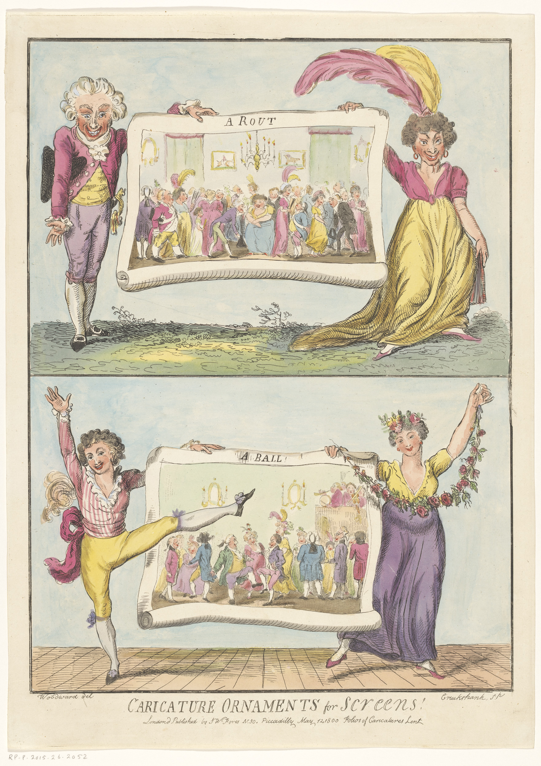 Weegschaal met de schrijvers Walter Scott en Thomas ...