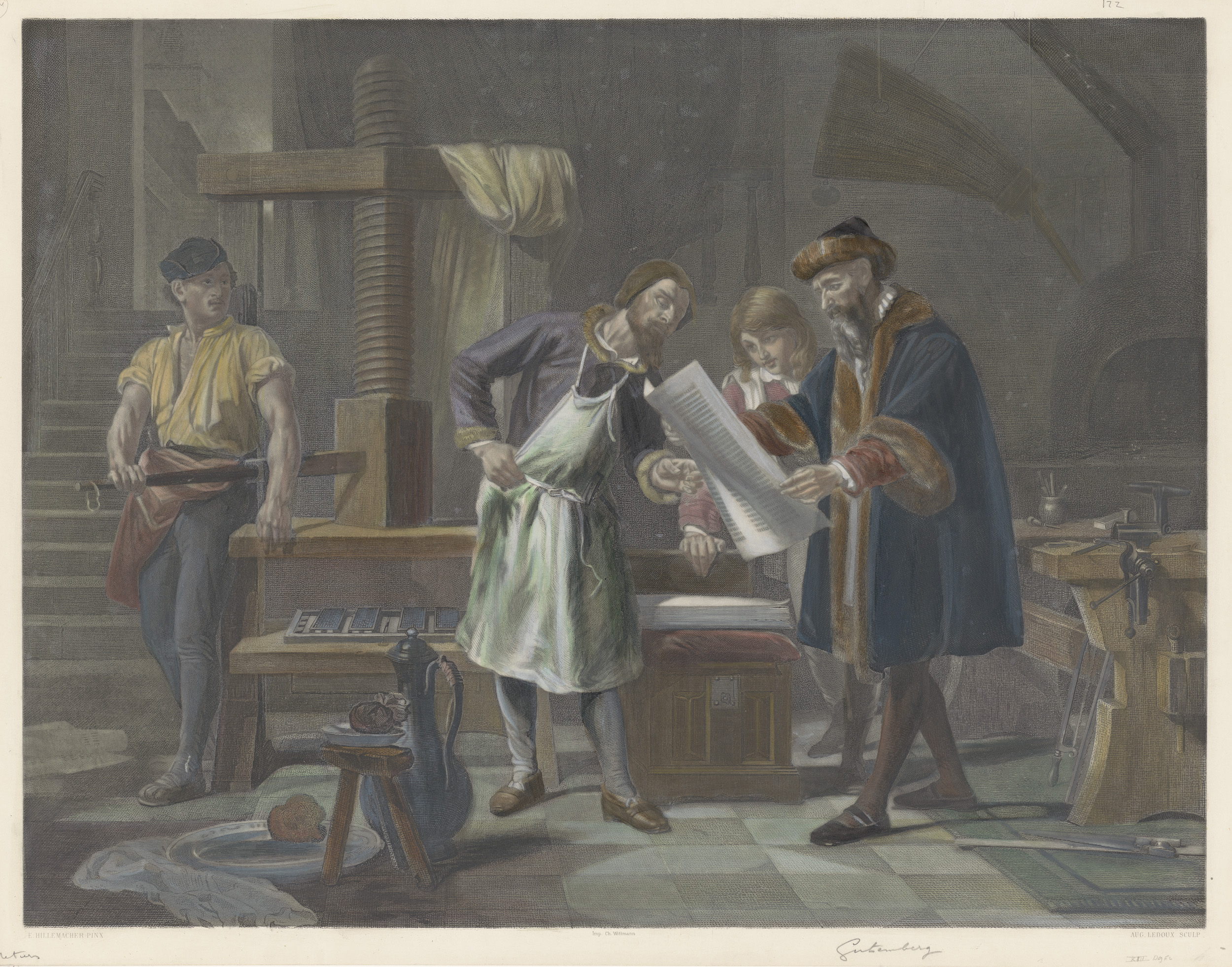 Koppermaandagprent met lofdicht op Laurens Janszoon ...