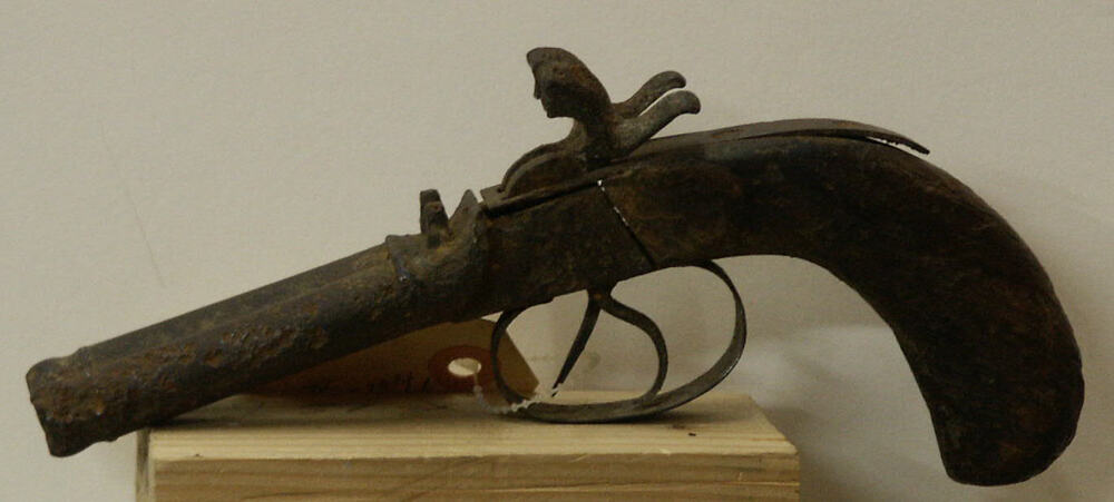 zakpistool of percussiepistool, dubbelloops, circa 1840