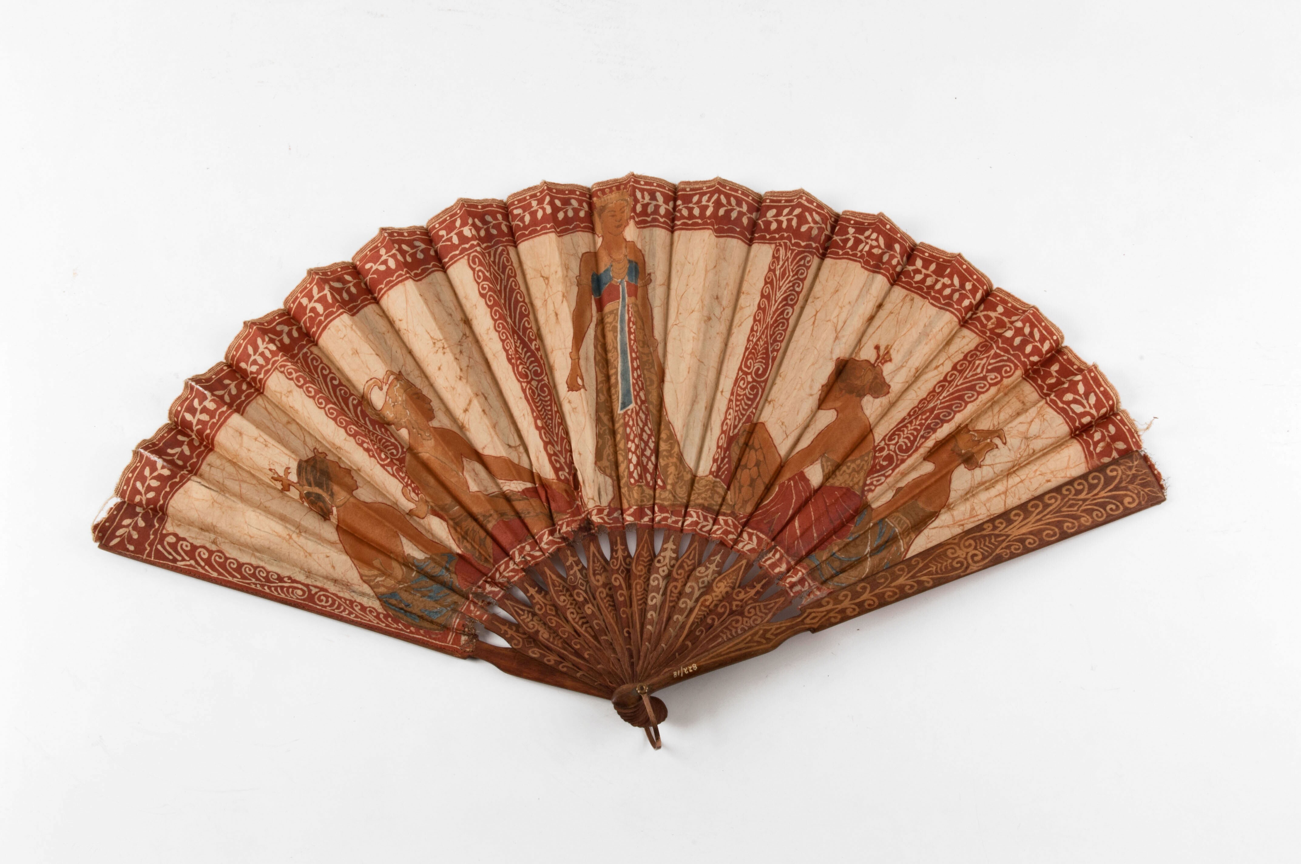 Op zijde gebatikte waaier in garnituur van namaak pa...