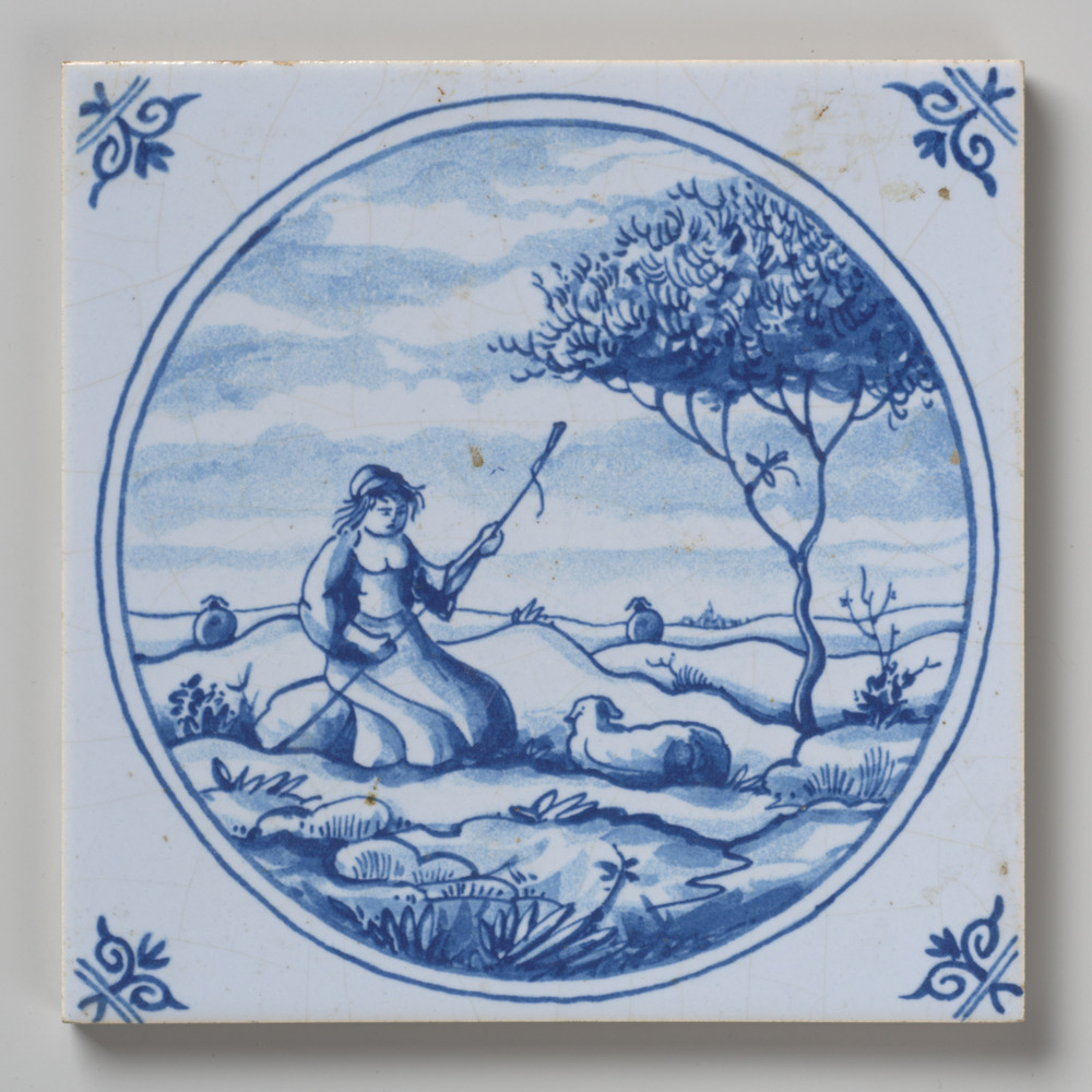 tegel van aardewerk met tinglazuur, voorstellende: v...