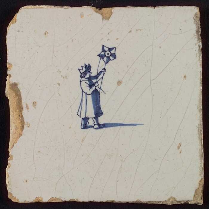 Tafereeltegel, kinderspel, kind met Driekoningen, ho...