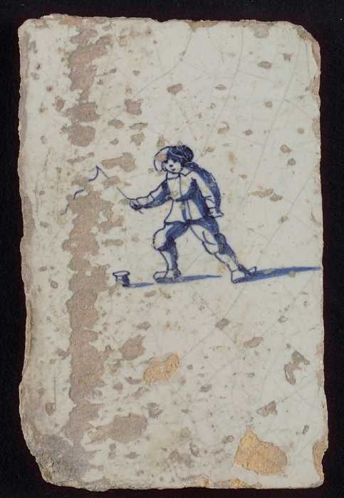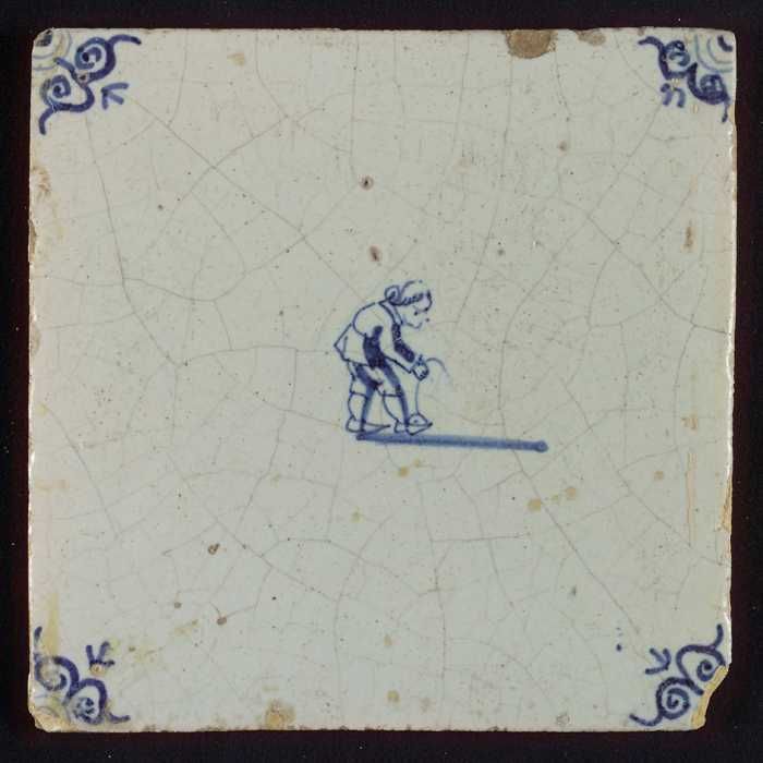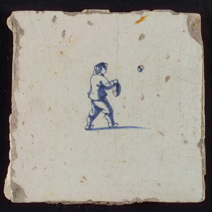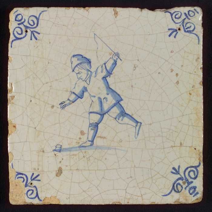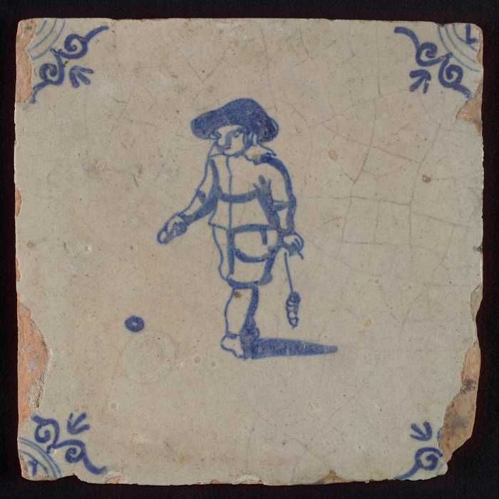 Tafereeltegel, kinderspel, kind met tol, hoekmotief ...