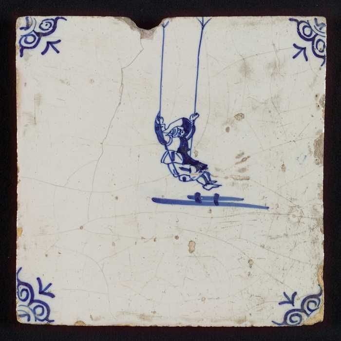 Tafereeltegel, kinderspel, schommelen, hoekmotief os...