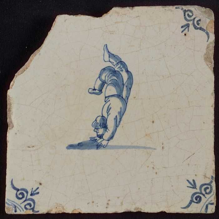 Tafereeltegel, kinderspel, kopstand, hoekmotief osse...