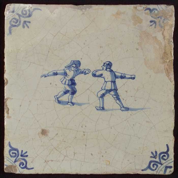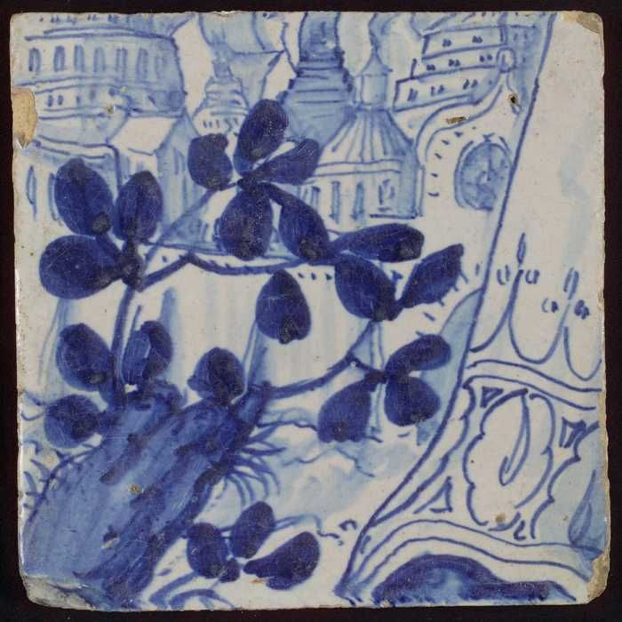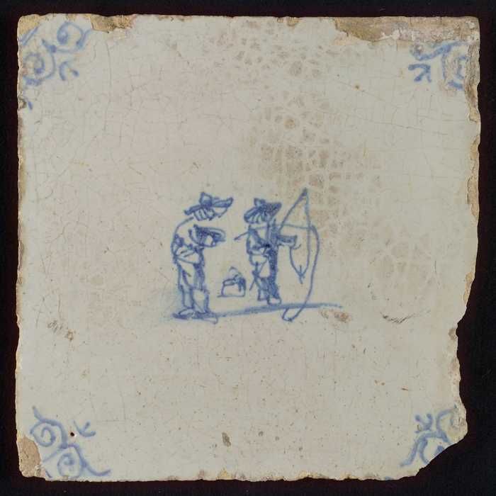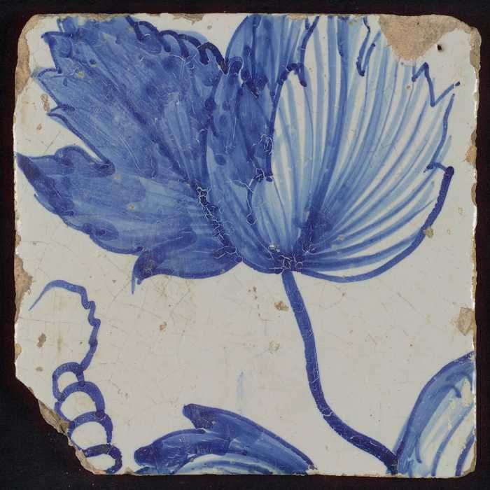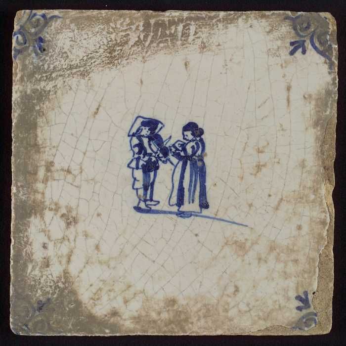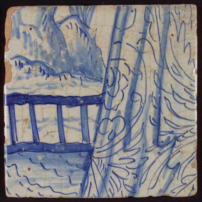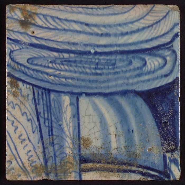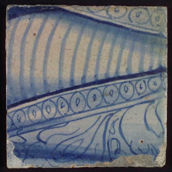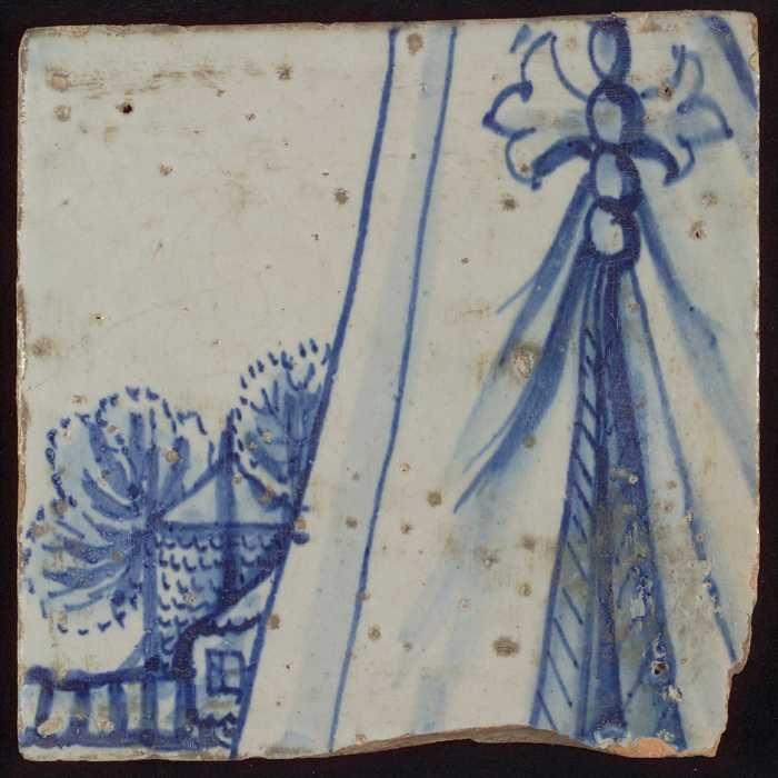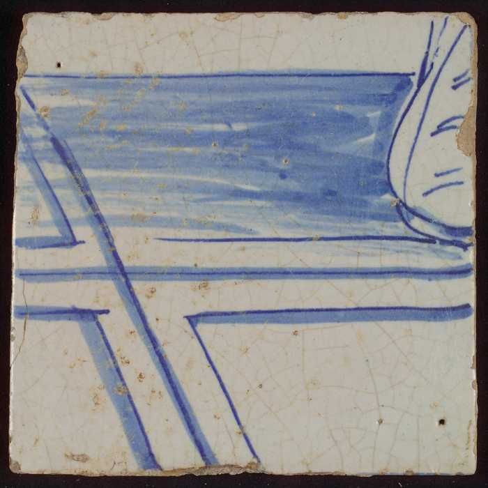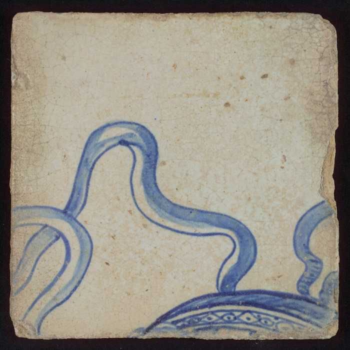 Tegel met in blauw gedecoreerd voorwerp