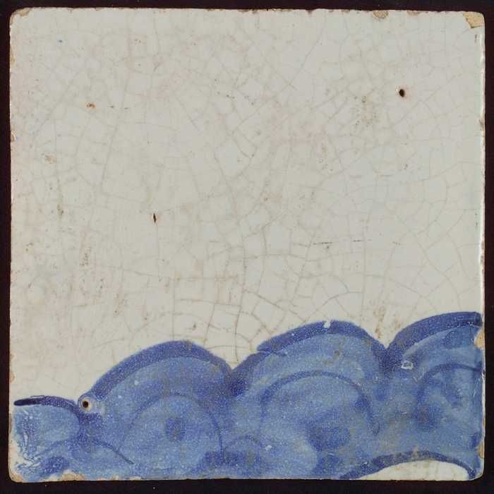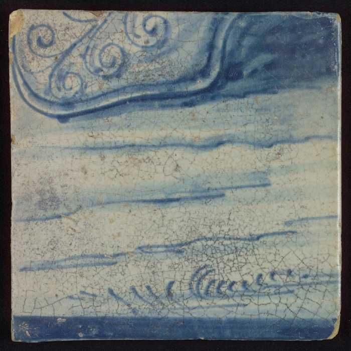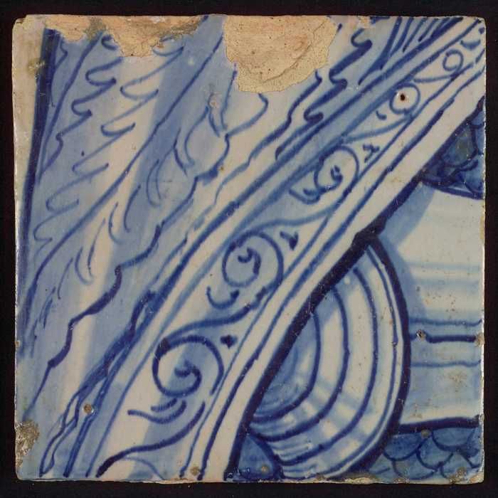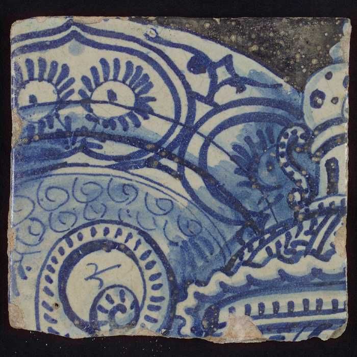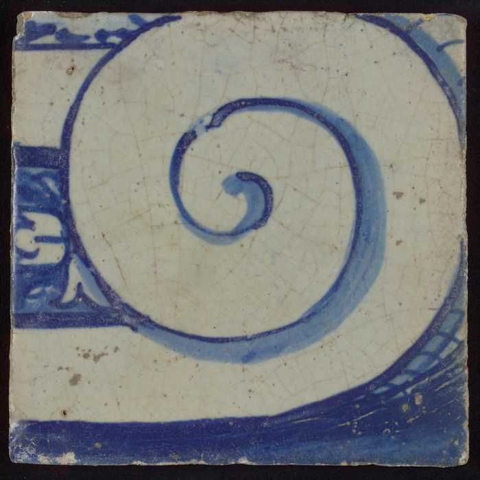 Tegel met blauwe opgerolde krul
