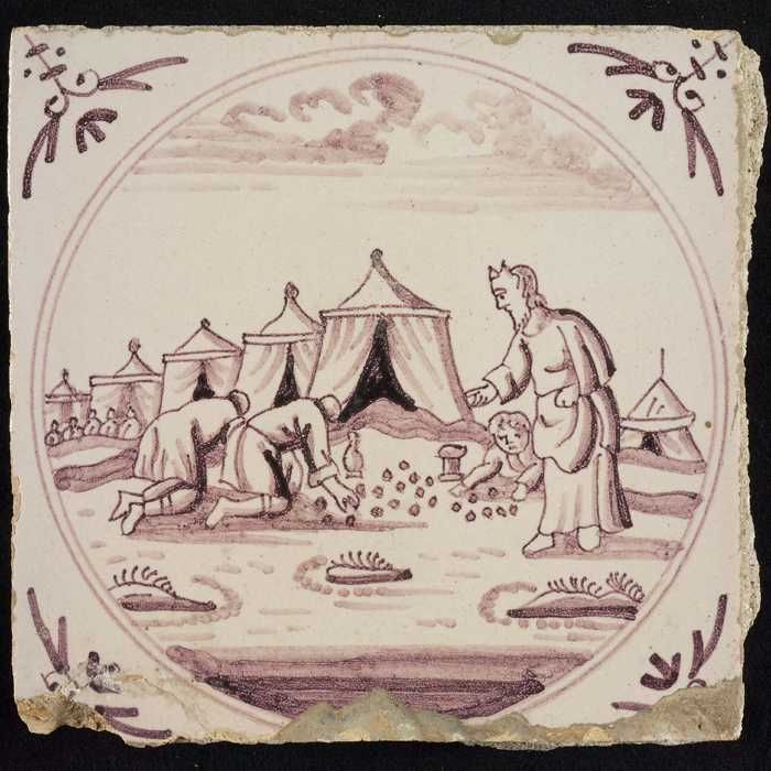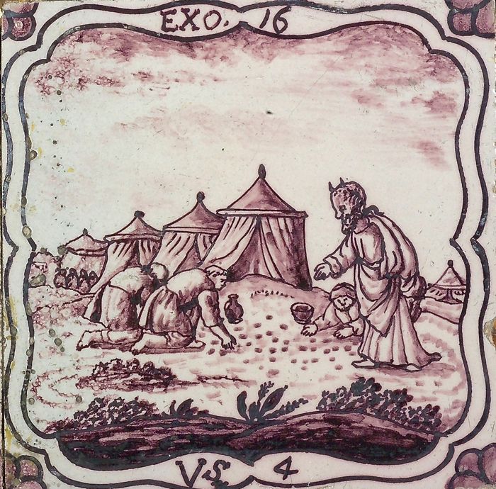 Tafereeltegel, het manna uit de hemel, hoekmotief os...