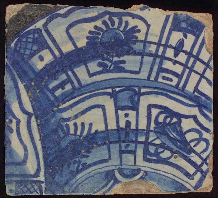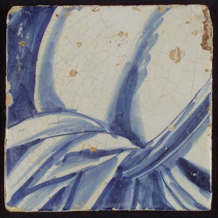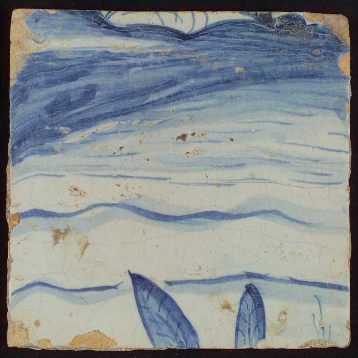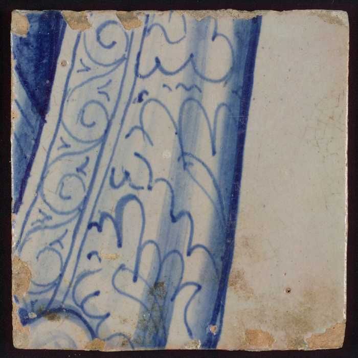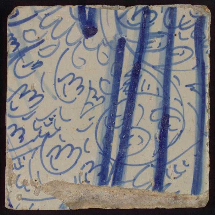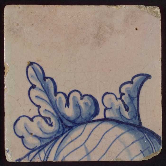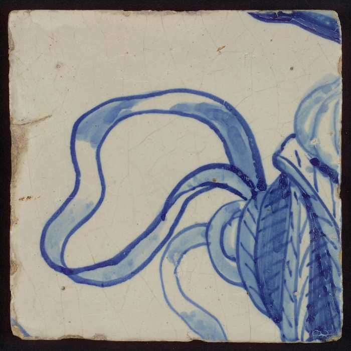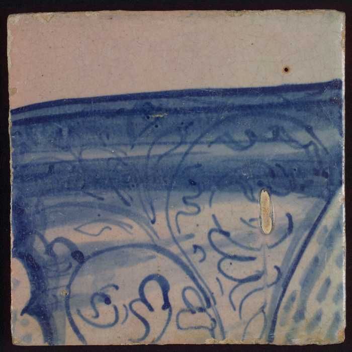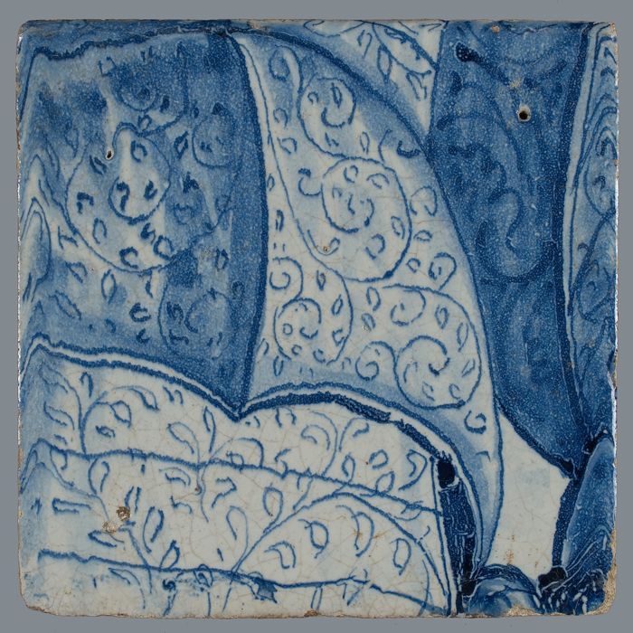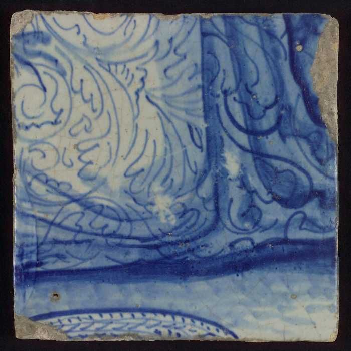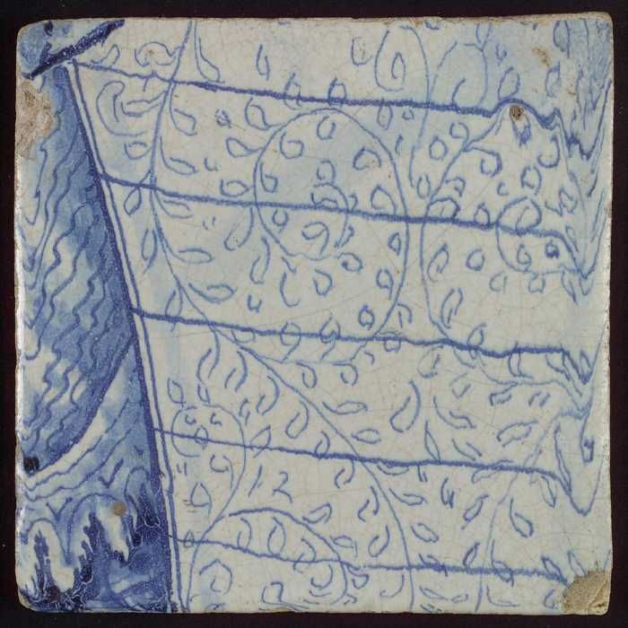 Tegel met blauwe schildering (bladvormige ornamenten)