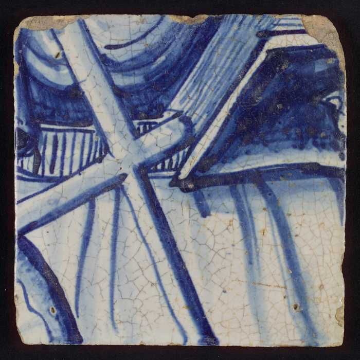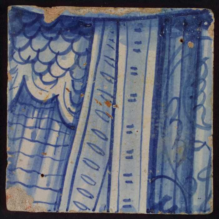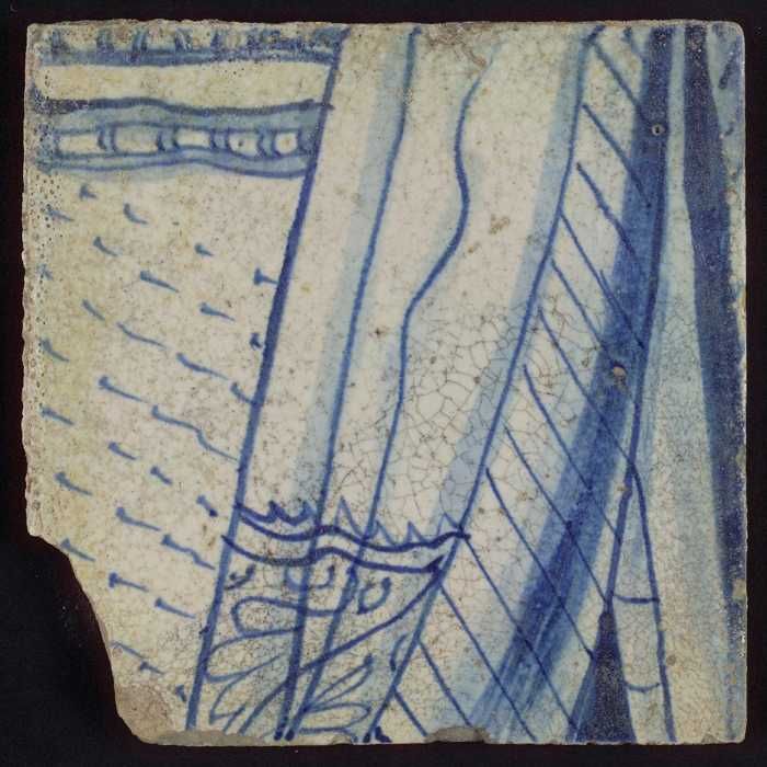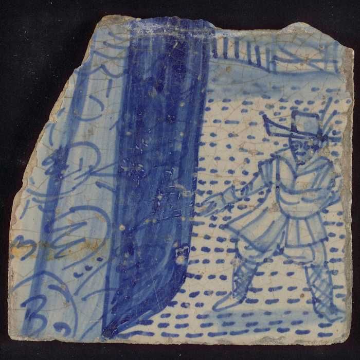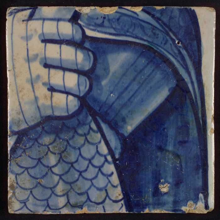 Tegel met blauw stukje harnas en plooien