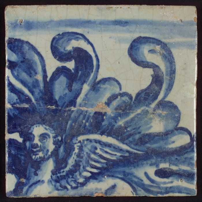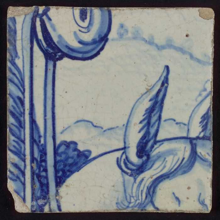Tegel met blauw gevleugeld figuur