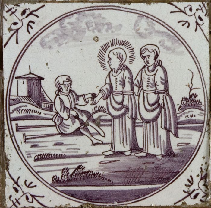 Losse tegel van tableau 'Hoop', waarop een zaaier in...