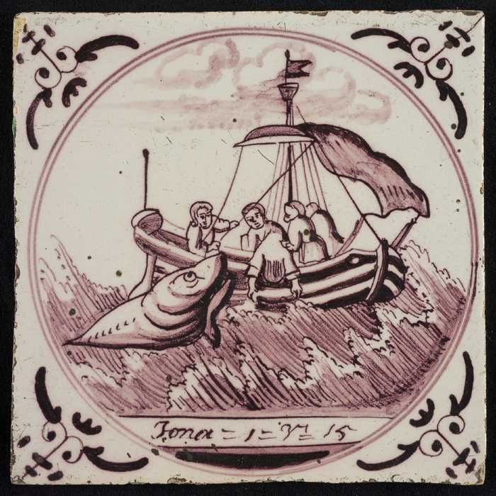Tafereeldecor, Jona wordt in zee geworpen, hoekmotie...