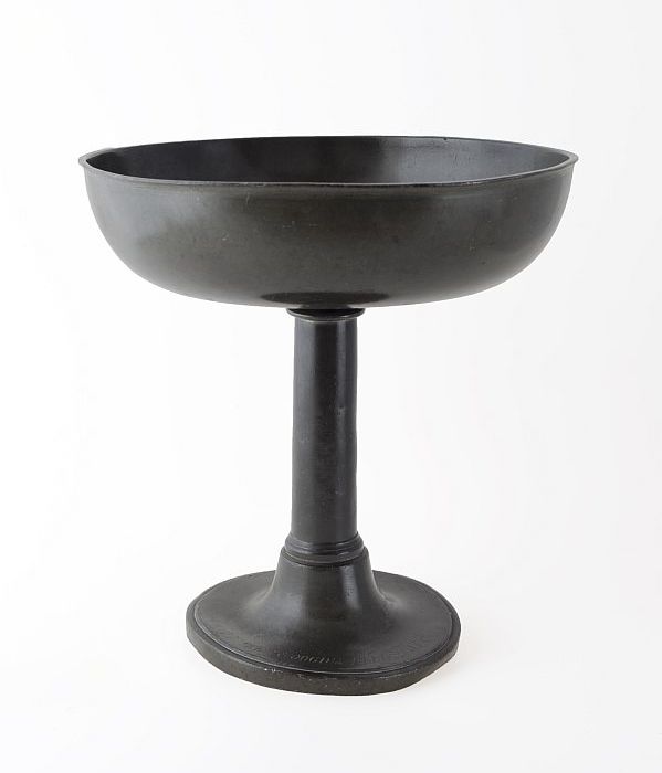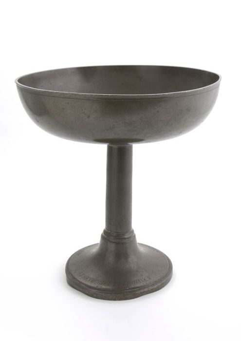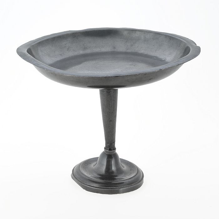 Kelkvormige collecteschaal met gegraveerde tekst op ...