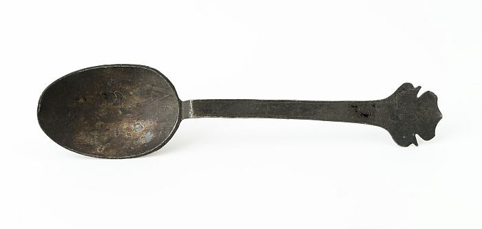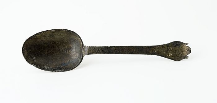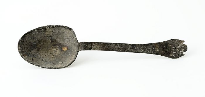 Lepel met ovale bak en platte steel met drielobbig s...