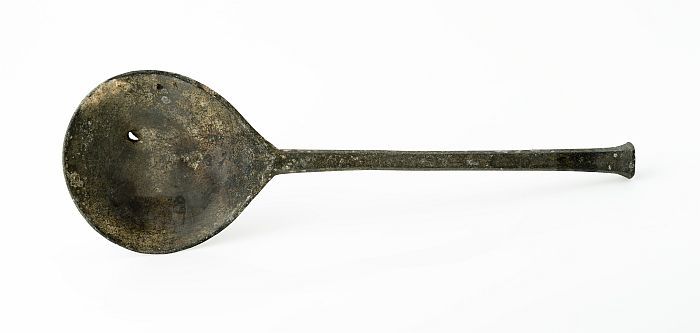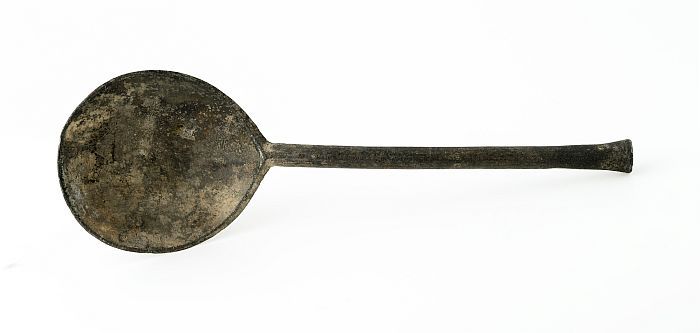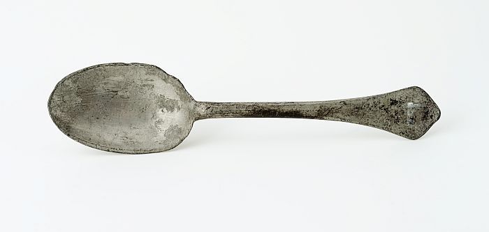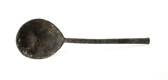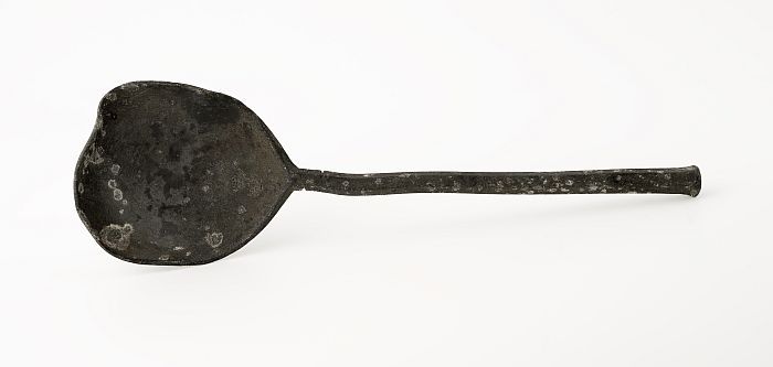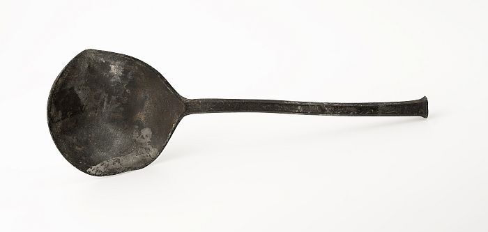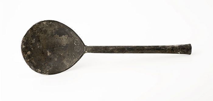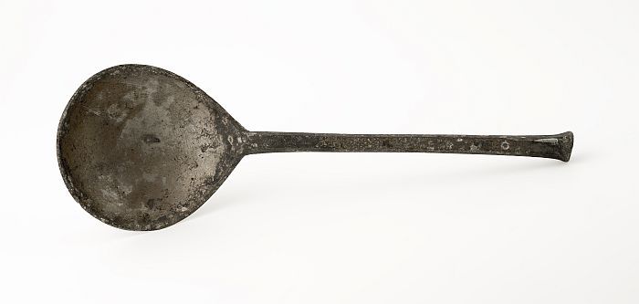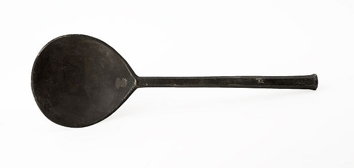 Lepel met ovale bak en platte steel met accoladevorm...