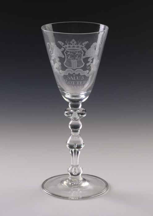Kelkglas gegraveerd met stadswapen van Rotterdam en ...