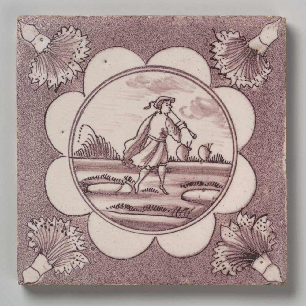 tegel van aardewerk met tinglazuur, voorstellende: h...