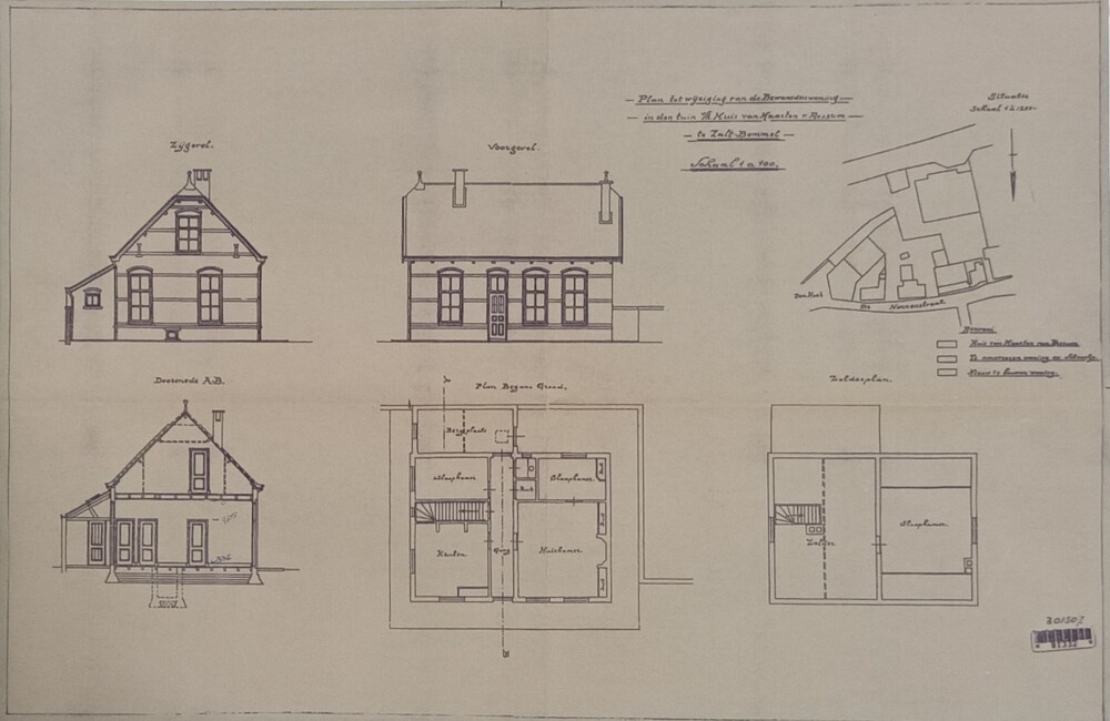 Plattegrond en verschillende aanzichten van het Muse...