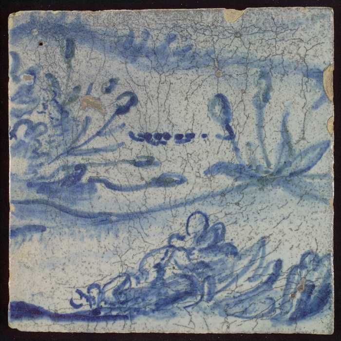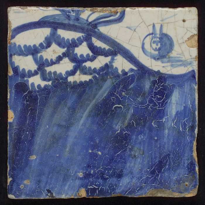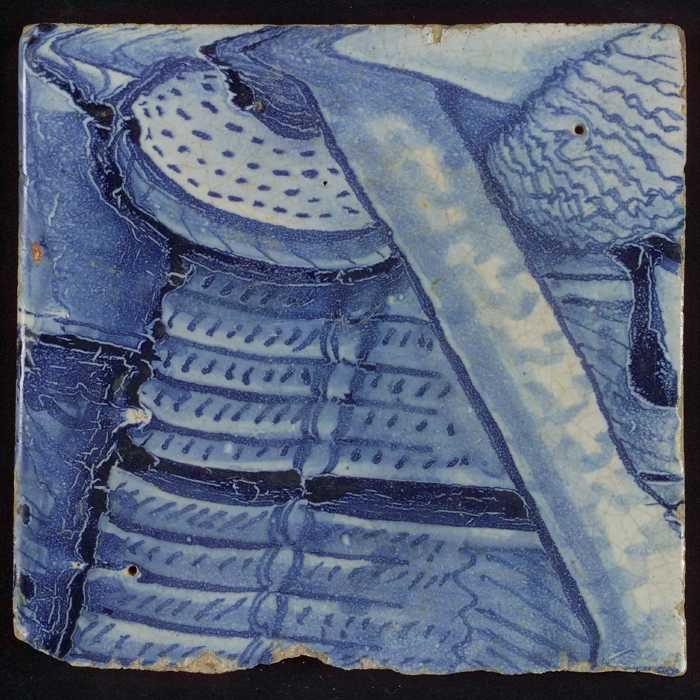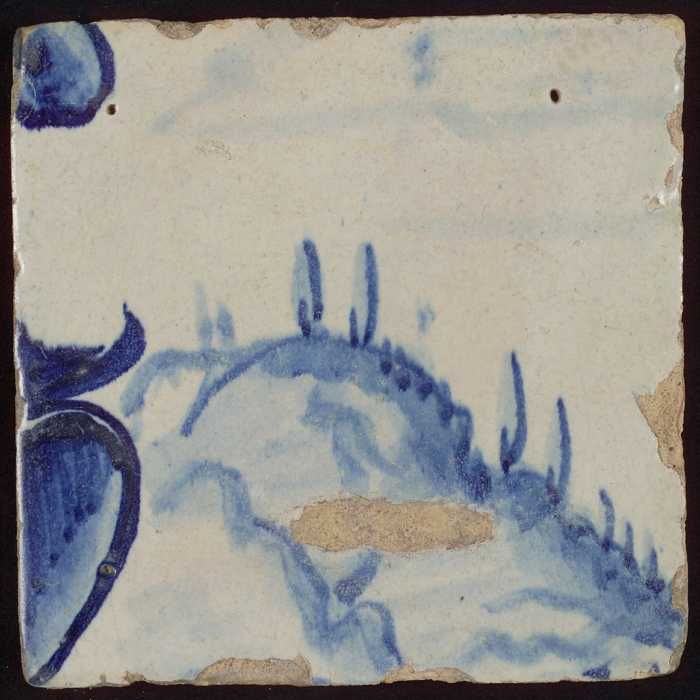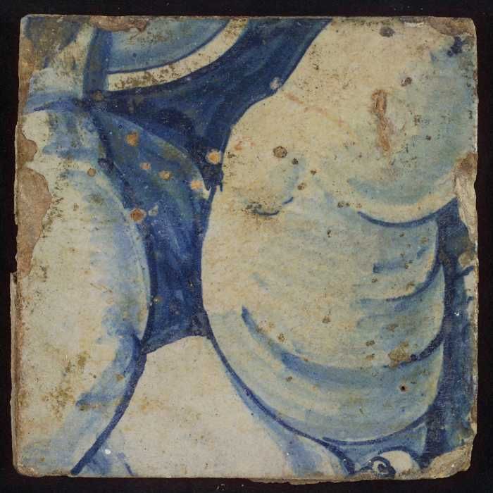 Tegel met blauwe arm (?)
