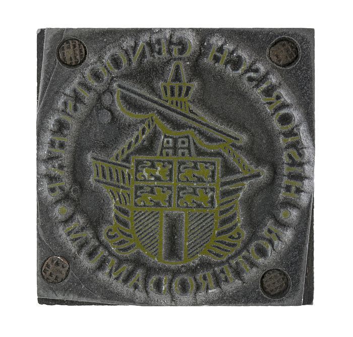 Metalen cliché voor Roterodamum met het wapen van Ro...