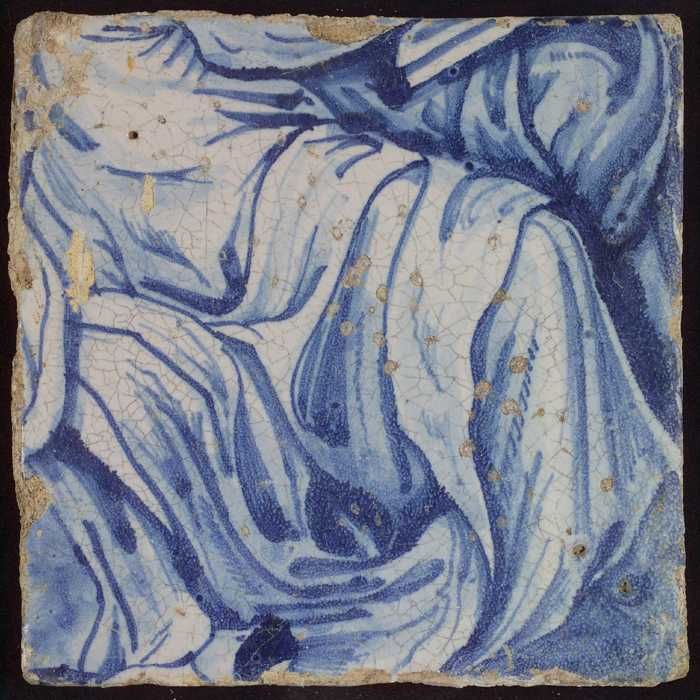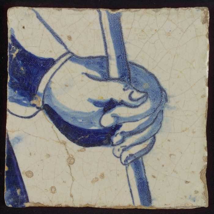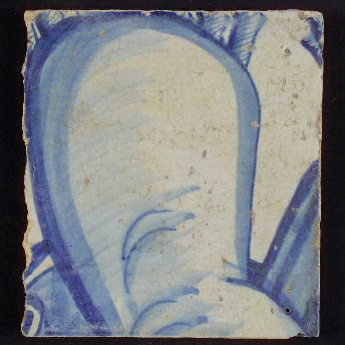 Tegel met blauwe hand en deel van hoofd