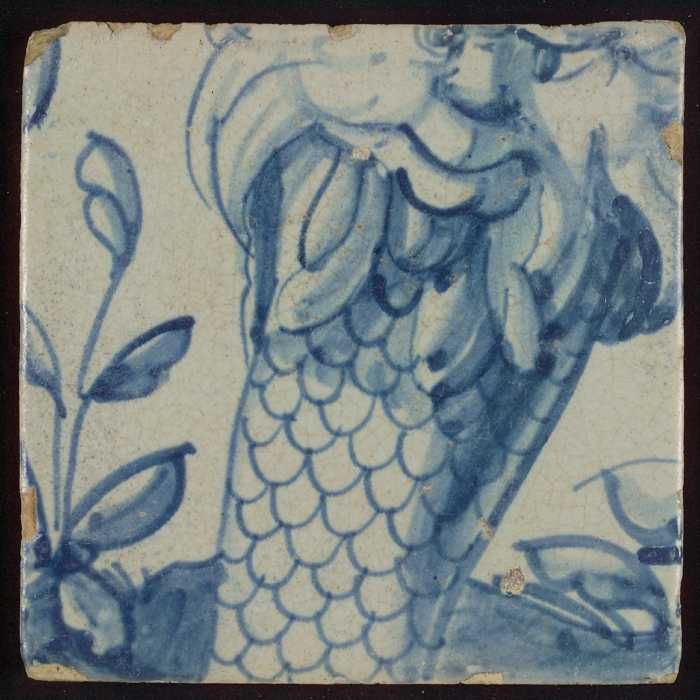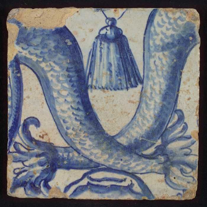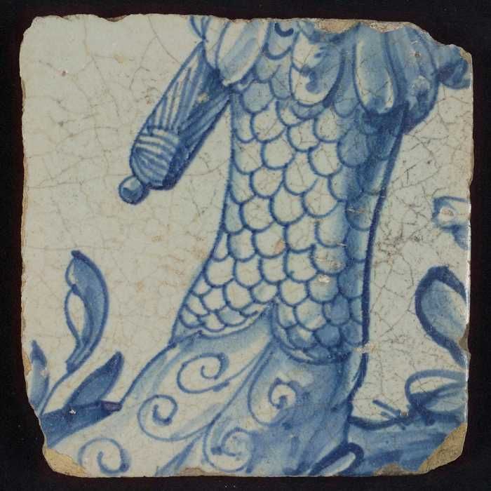 Tegel met blauwe geschubde staarten en kwastje