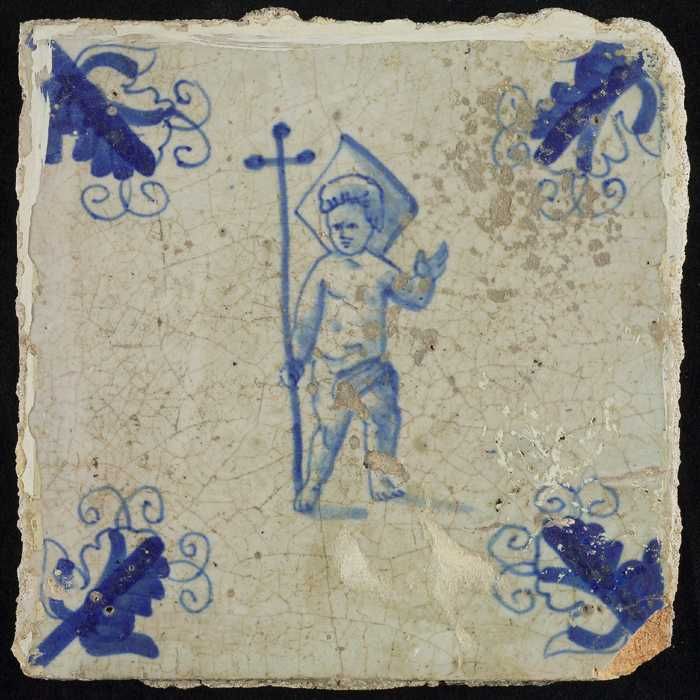 Figuurtegel, staand Christuskind met processiekruis,...