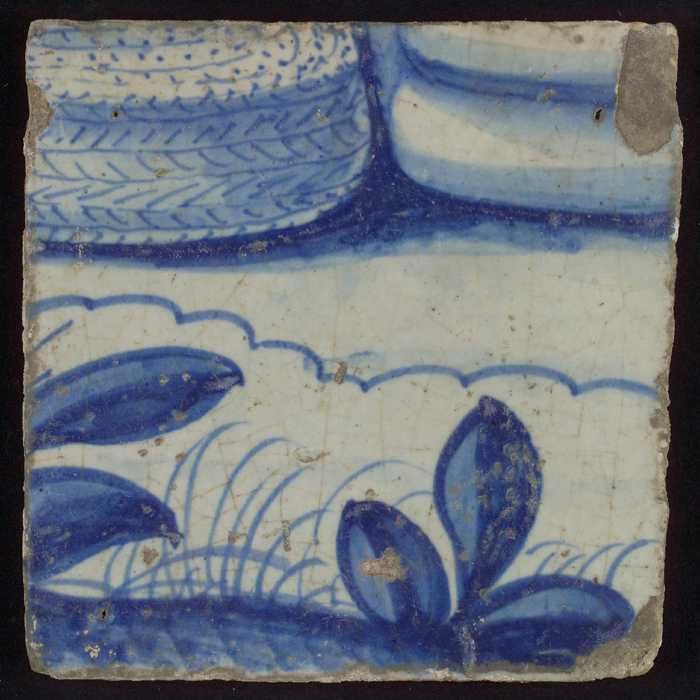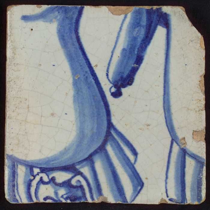 Tegel met in blauw geharnast been met voet