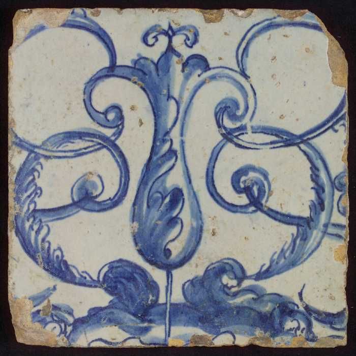 Tegel met blauwe kronkelende slingers