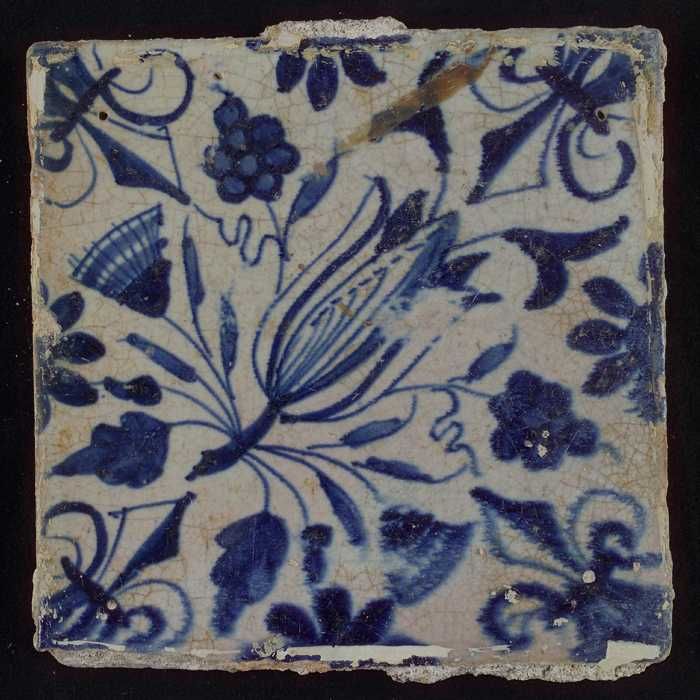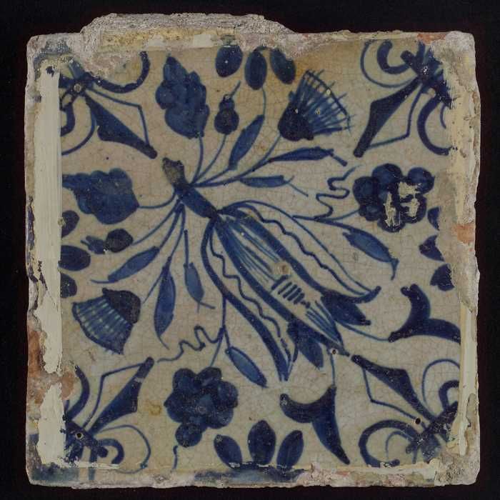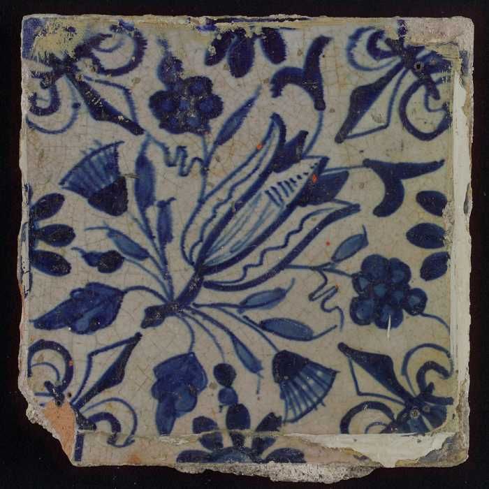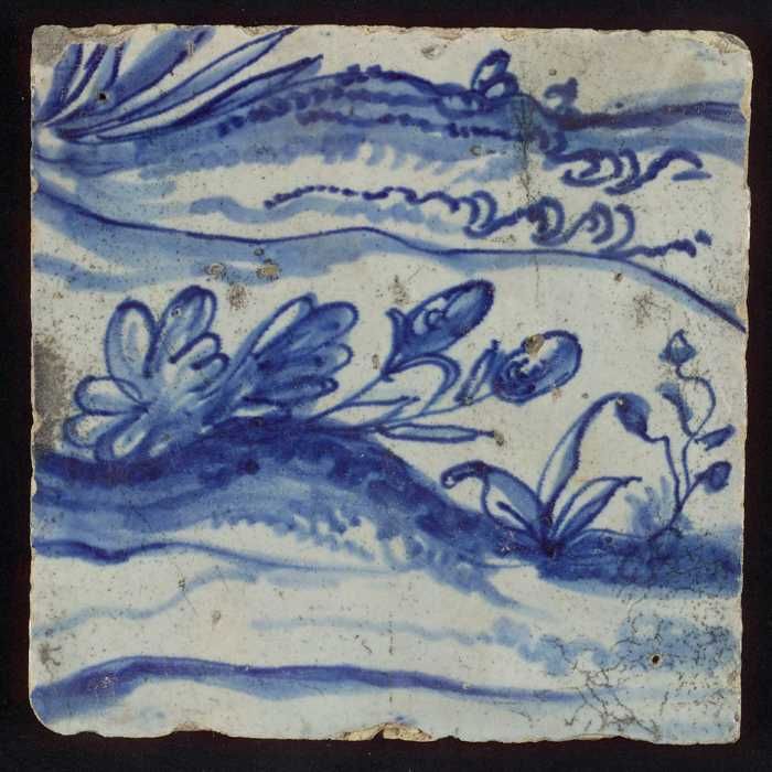 Tegel met blauwe plantjes