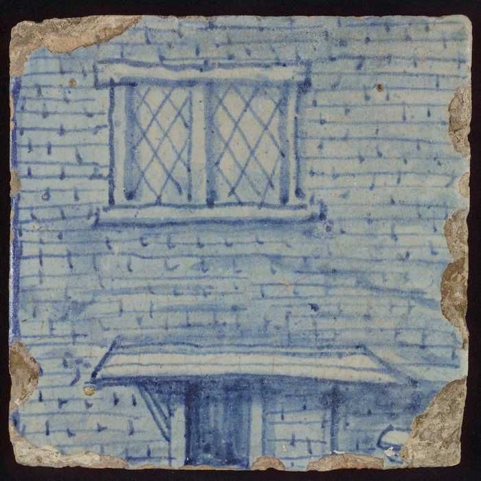 Tegel met in blauw gevel van stenen huis