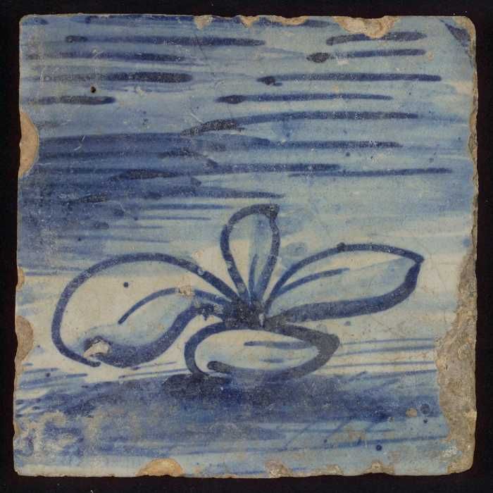 Tegel met blauwe bloem en krullen