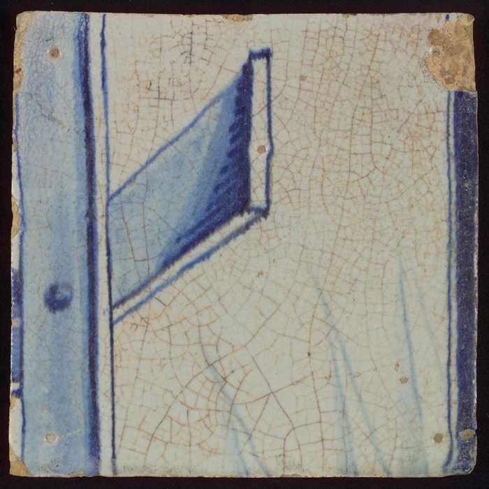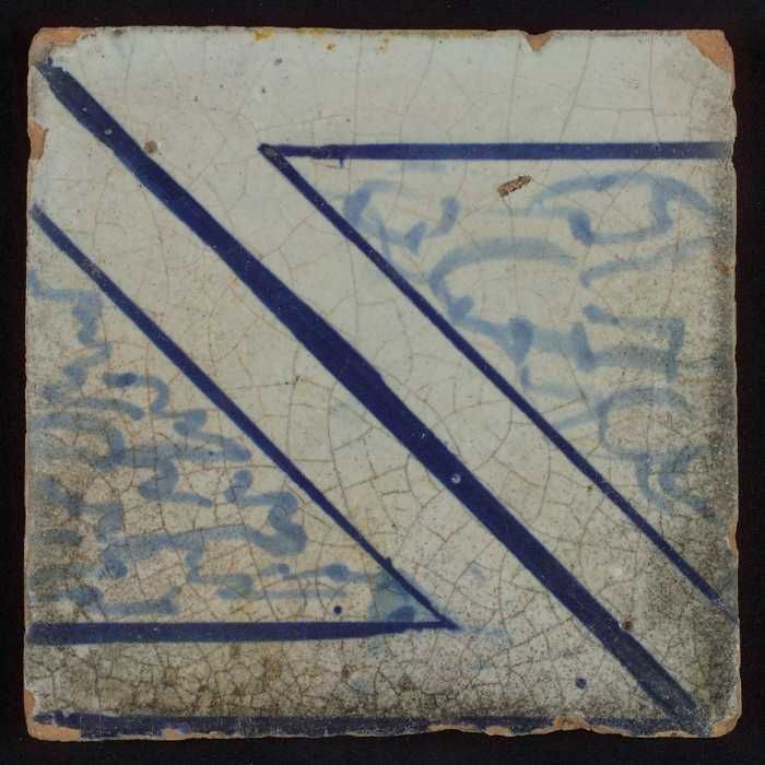 Tegel met blauw vlak en lijnen