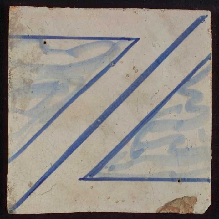 Tegel met blauwe diagonale lijnen