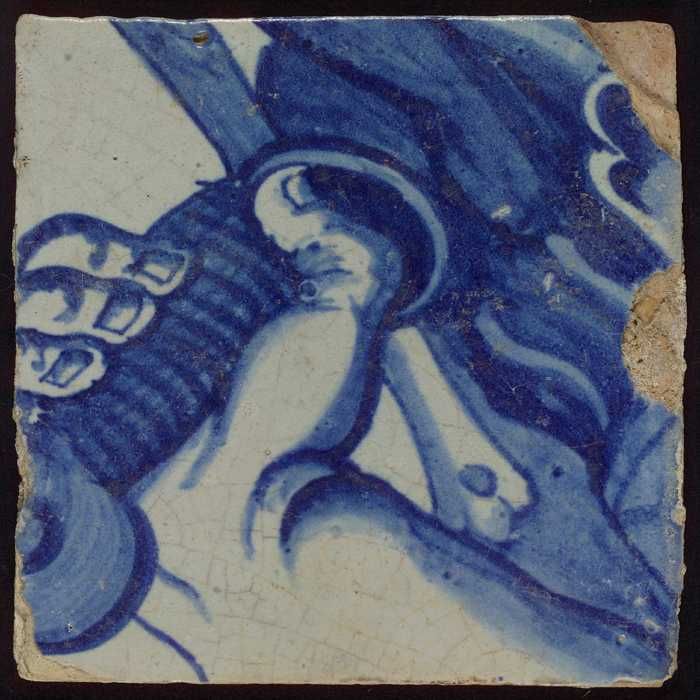 Losse tegel uit tableau met decor in blauw, gewaad e...
