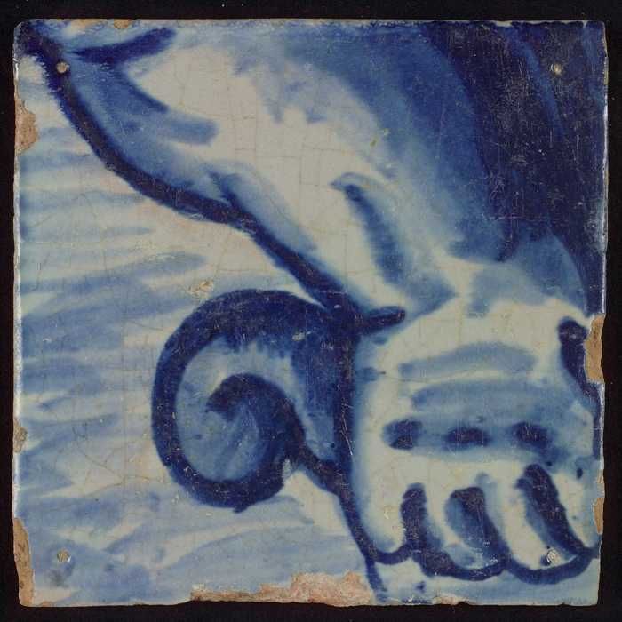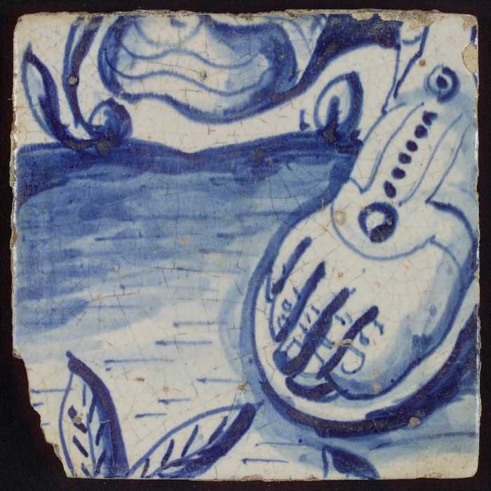 Tegel met blauwe hand