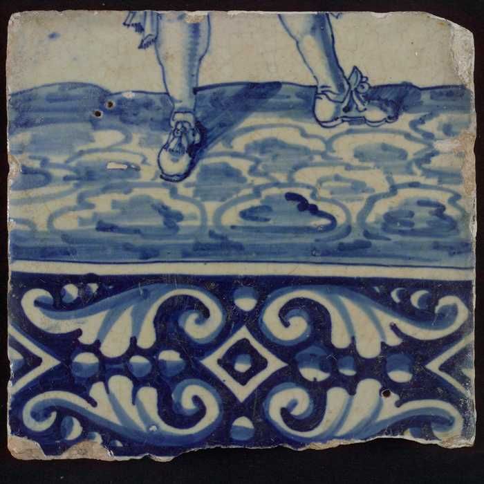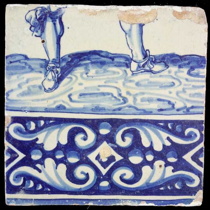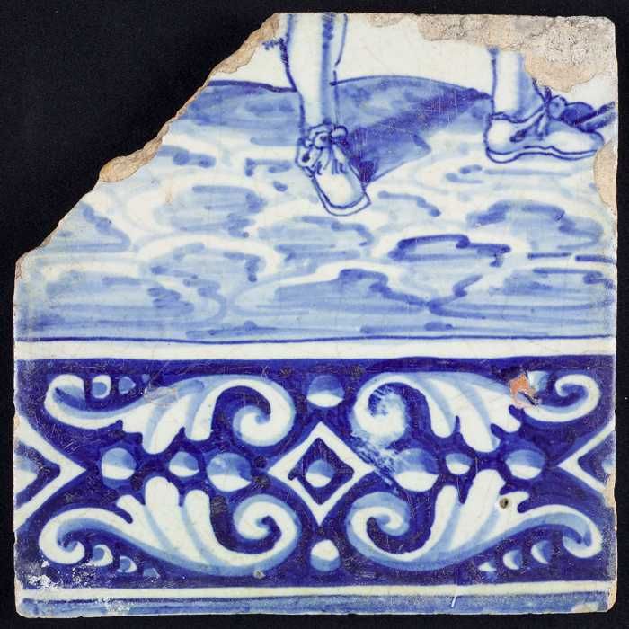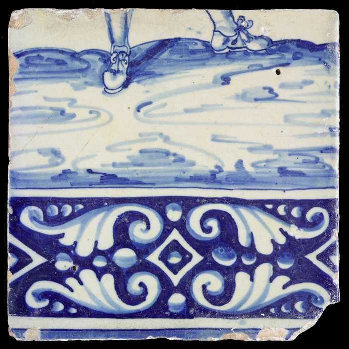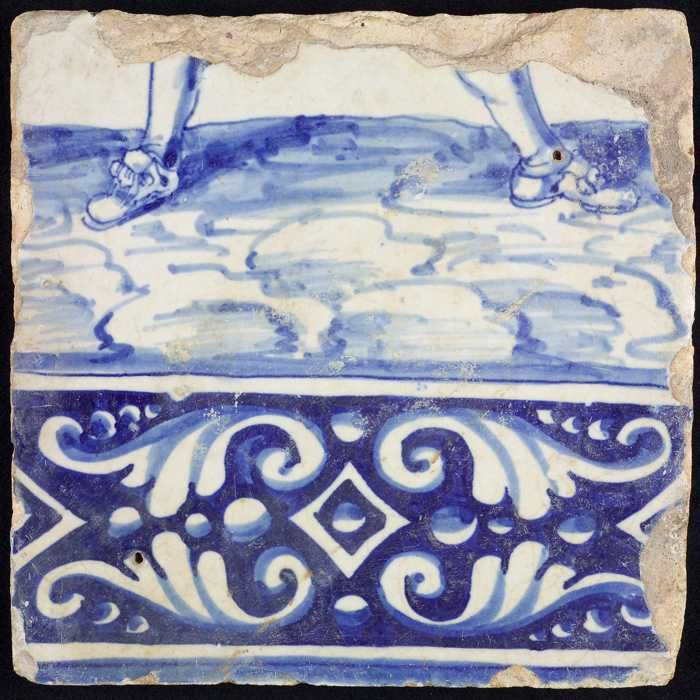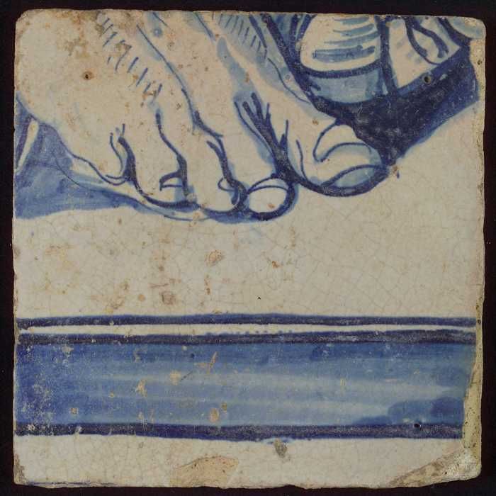 Tegel van tableau met in blauw voeten en gedecoreerd...