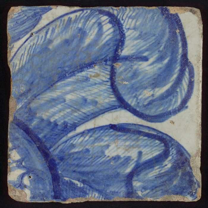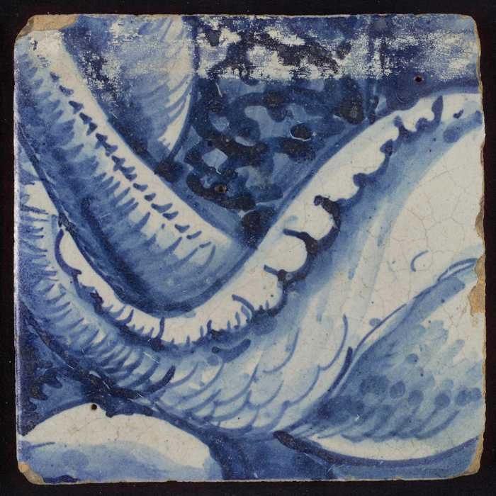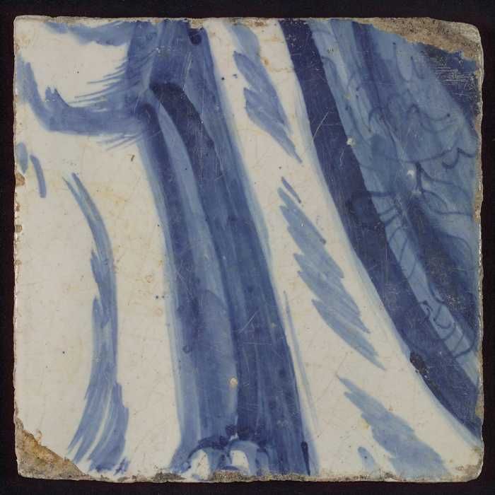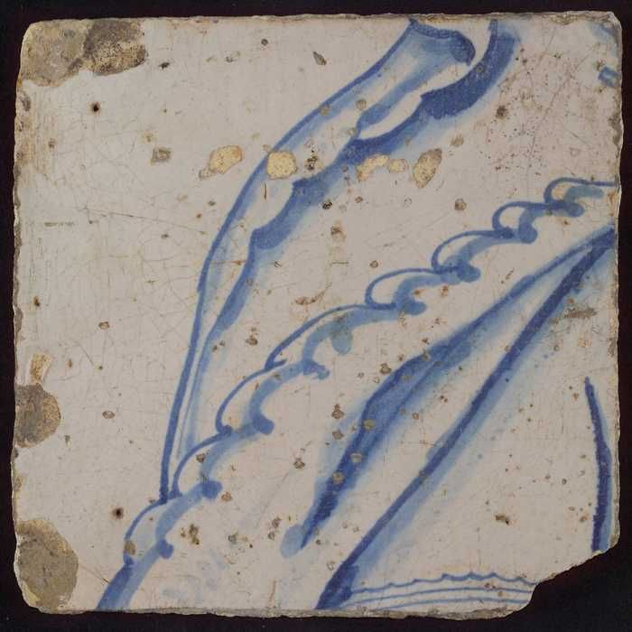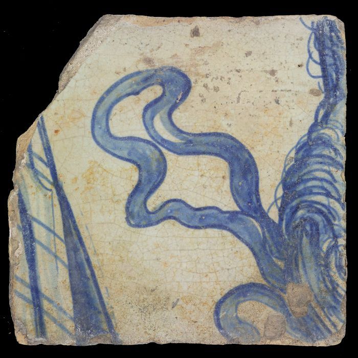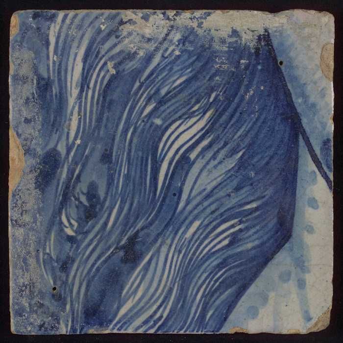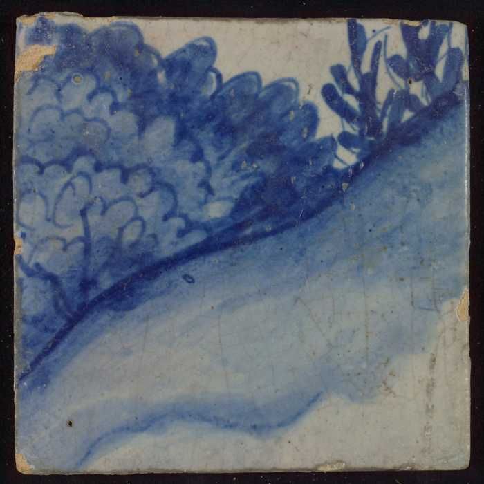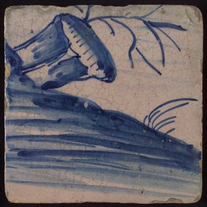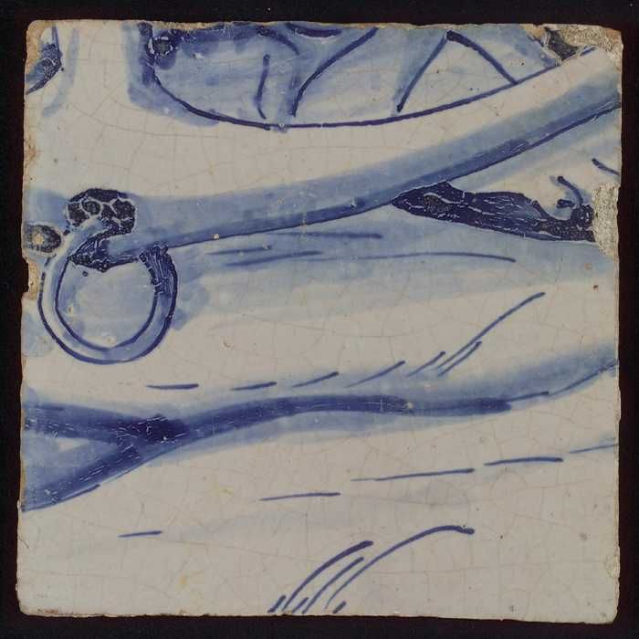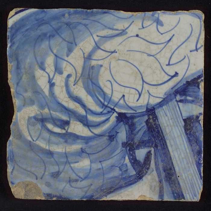 Losse tegel uit tableau 'Hoop' (?), met anker in blauw